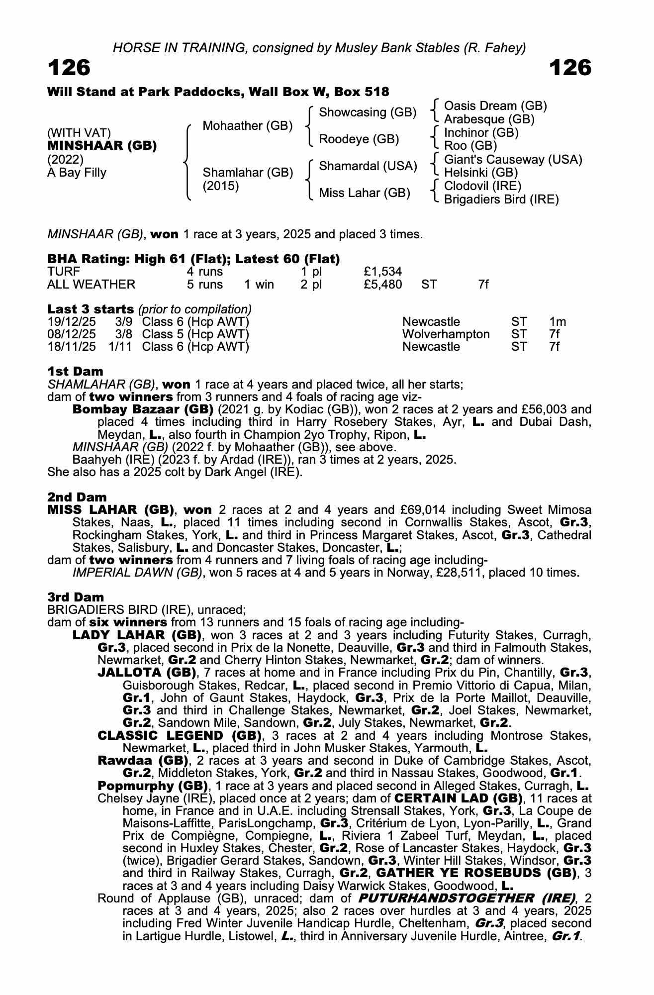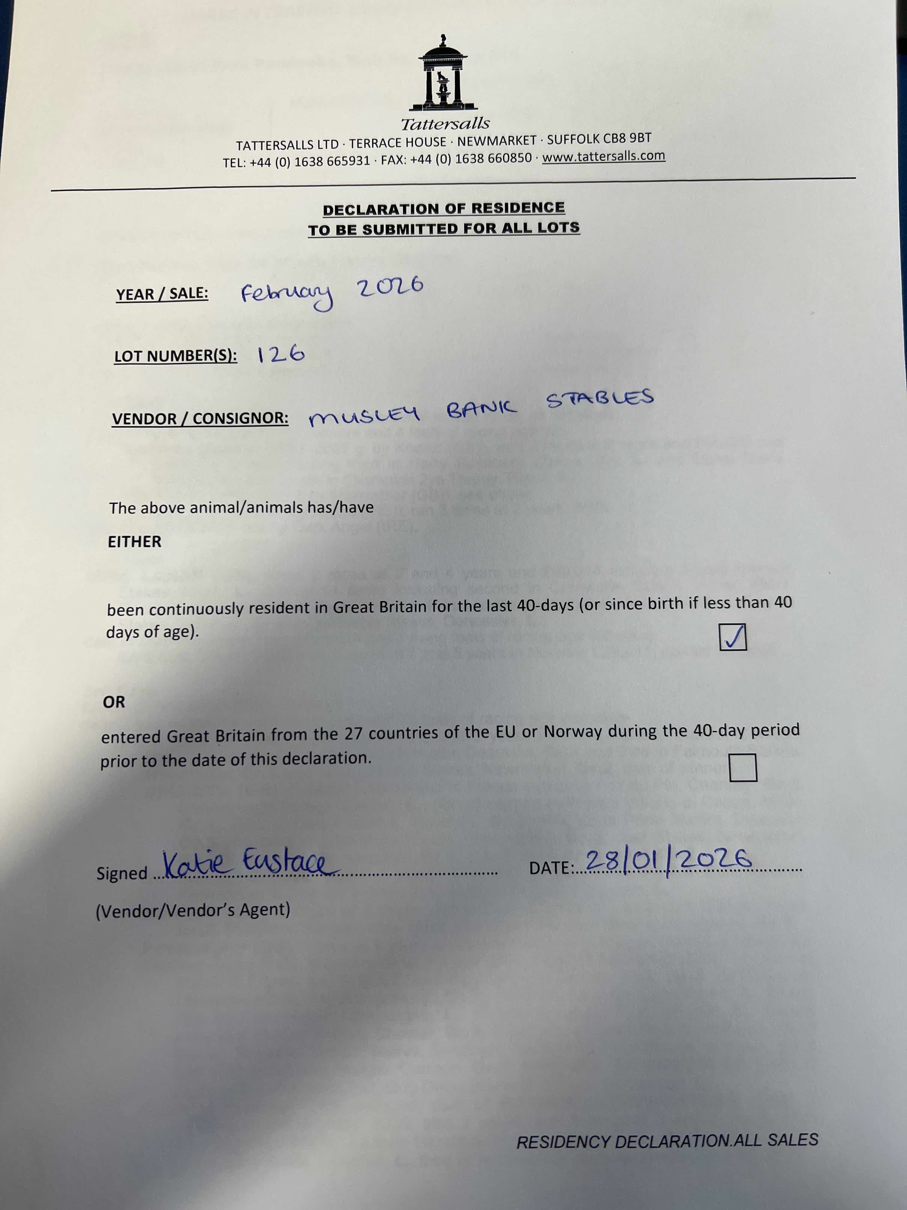 Consignor: Musley Bank Stables (R. Fahey)