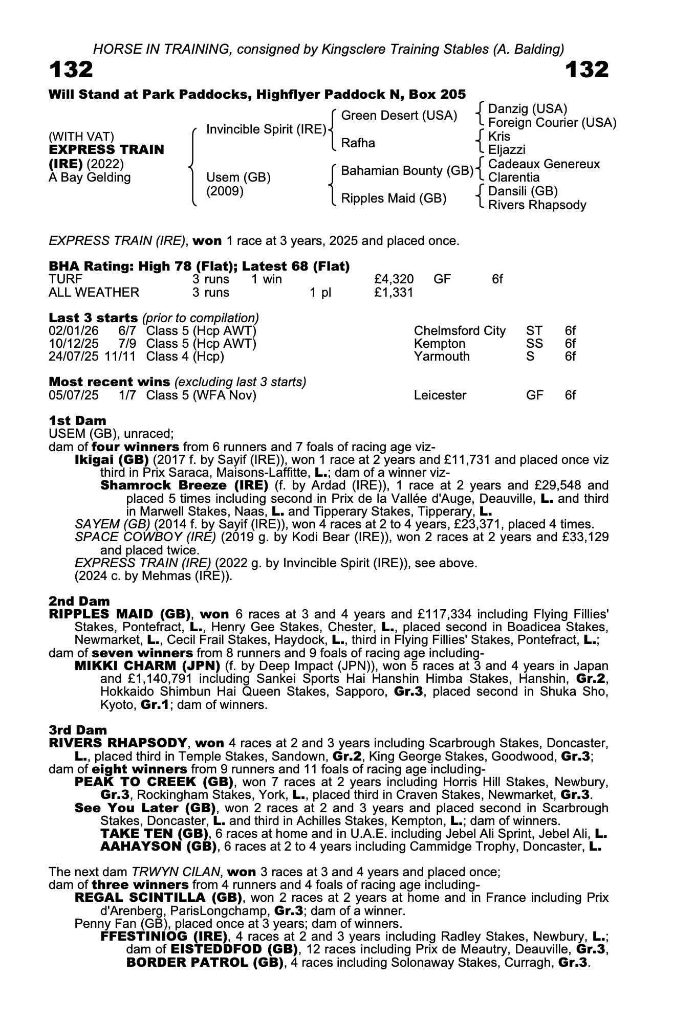 Consignor: Kingsclere Training Stables (A. Balding)