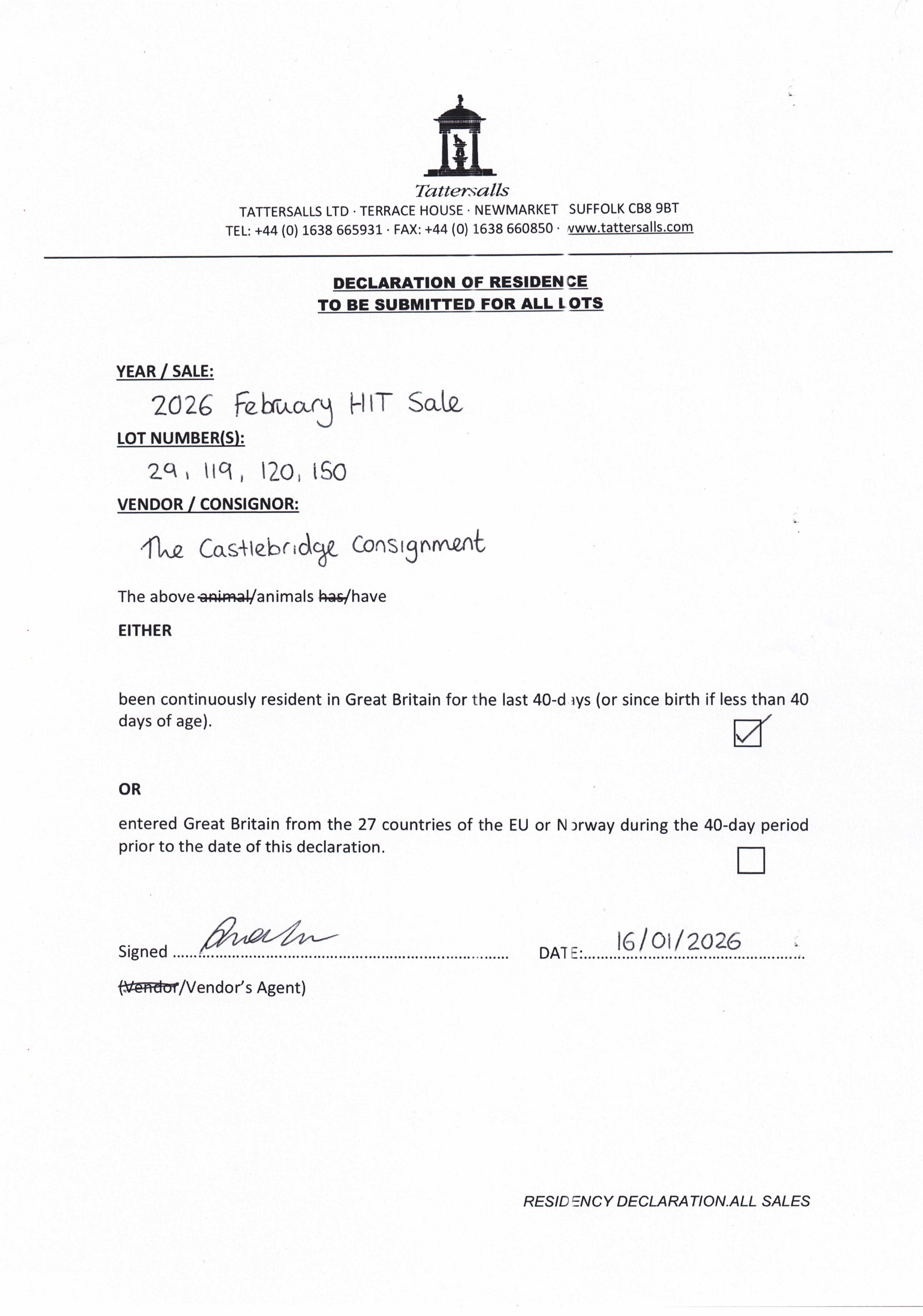 Consignor: The Castlebridge Consignment