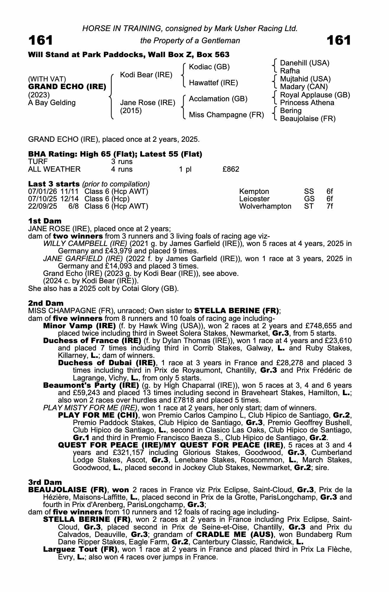 February Sale 2025 lot 163 Jane Garfield (IRE) (F. by James Garfield (IRE)), Westcourt Stables (S. Kirk)=>Van Der Meulen 2,000 gns