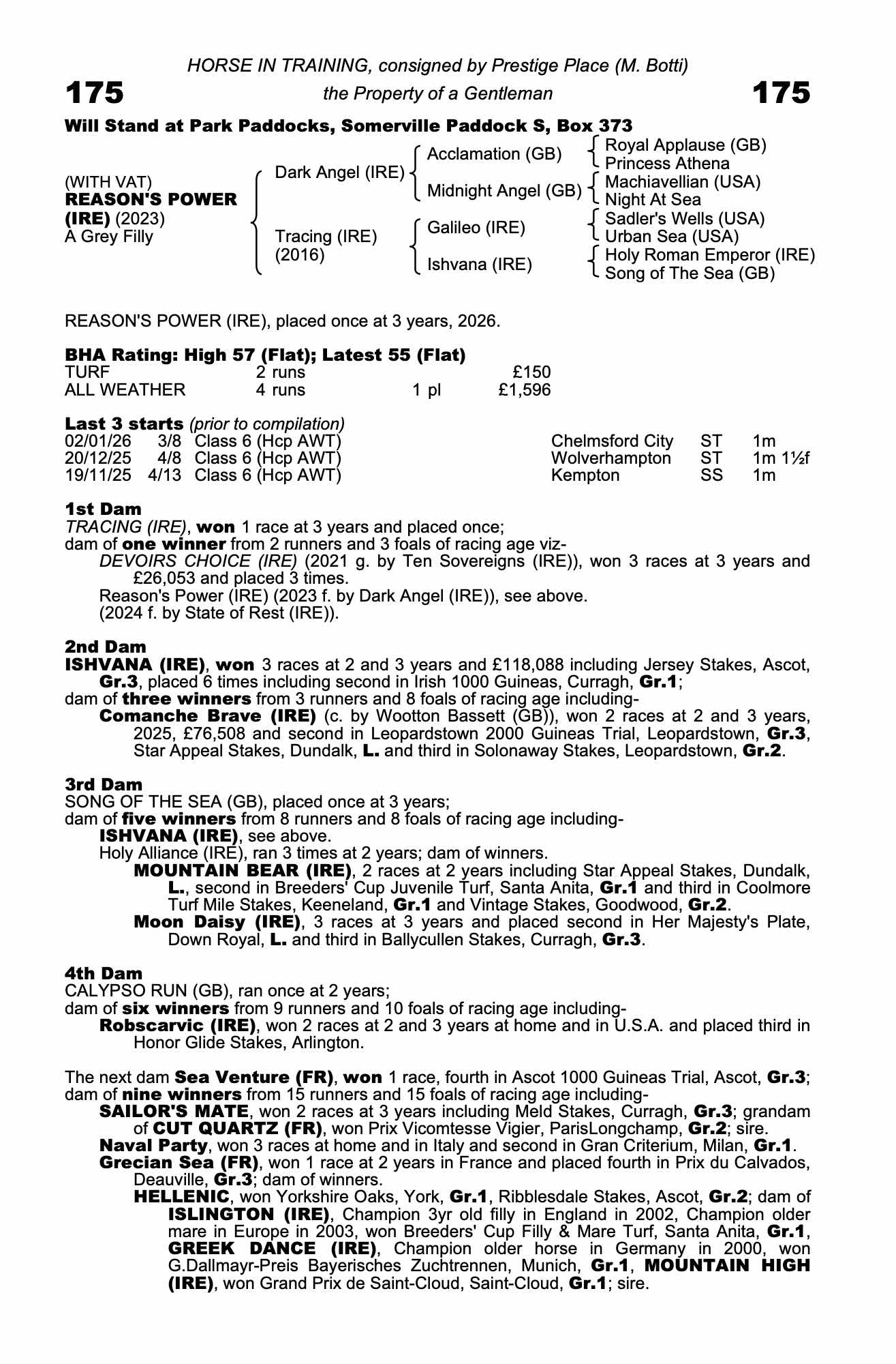 €56,000Y: third foal: half-sister to 1m winner (stays 1¼m) Devoirs Choice (by Ten Sovereigns): dam, temperamental 1½m winner, half-sister to useful winner up to 7f Comanche Brave out of smart winner up to 7f (2-y-o 5f winner) Ishvana: modest maiden: in first-time cheekpieces, 7/2, improved when ½-length third of 8 to dead-heaters Aneirin's Sword and Three Socks On in handicap at Chelmsford last time: stays 9.5f: acts on polytrack and tapeta: usually races close up. Marco Botti