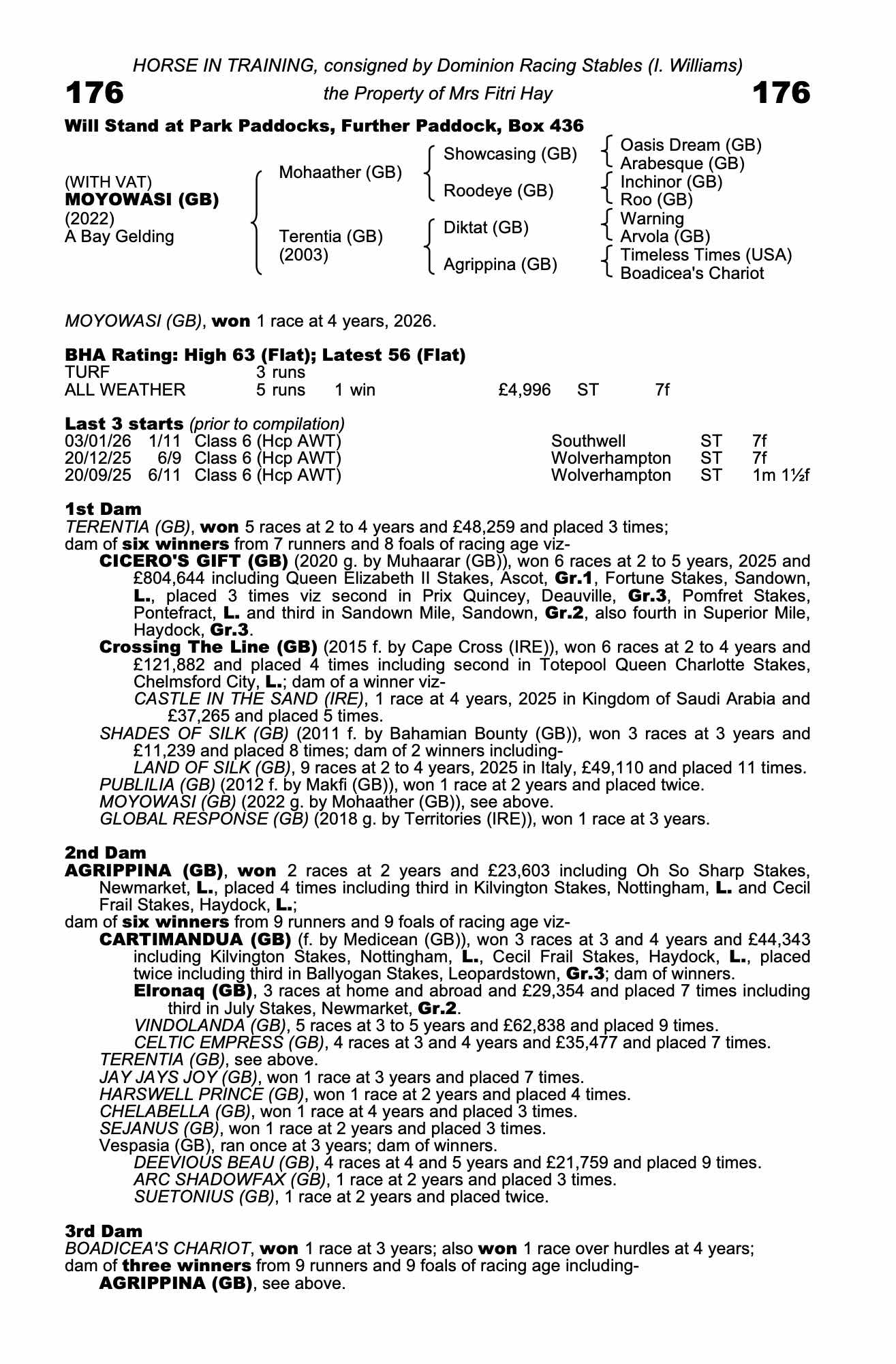 Consignor: Dominion Racing Stables (I. Williams)
