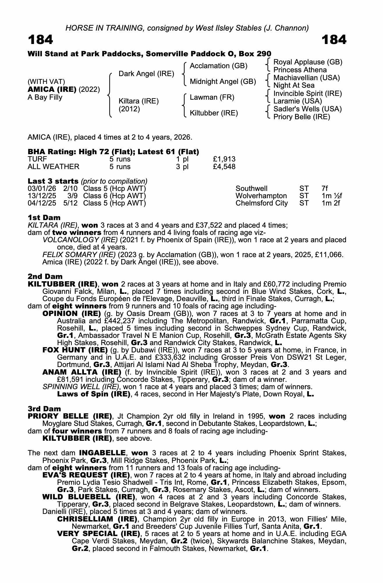 70| 2026 | Jan 3 | Sou | 60 | 5/1 | 2-10 | Nicola Currie | a7.1g | 59 | 70 | ||