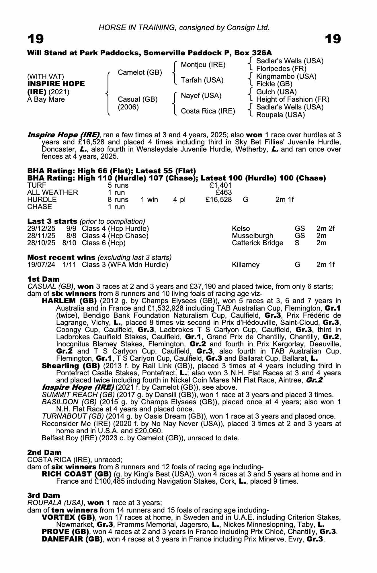 | 2025 | Oct 28 | Cat | 60 | 20/1 | 8-10 | Kaiya Fraser | 15.9s | 25 | 60 | ? | |
