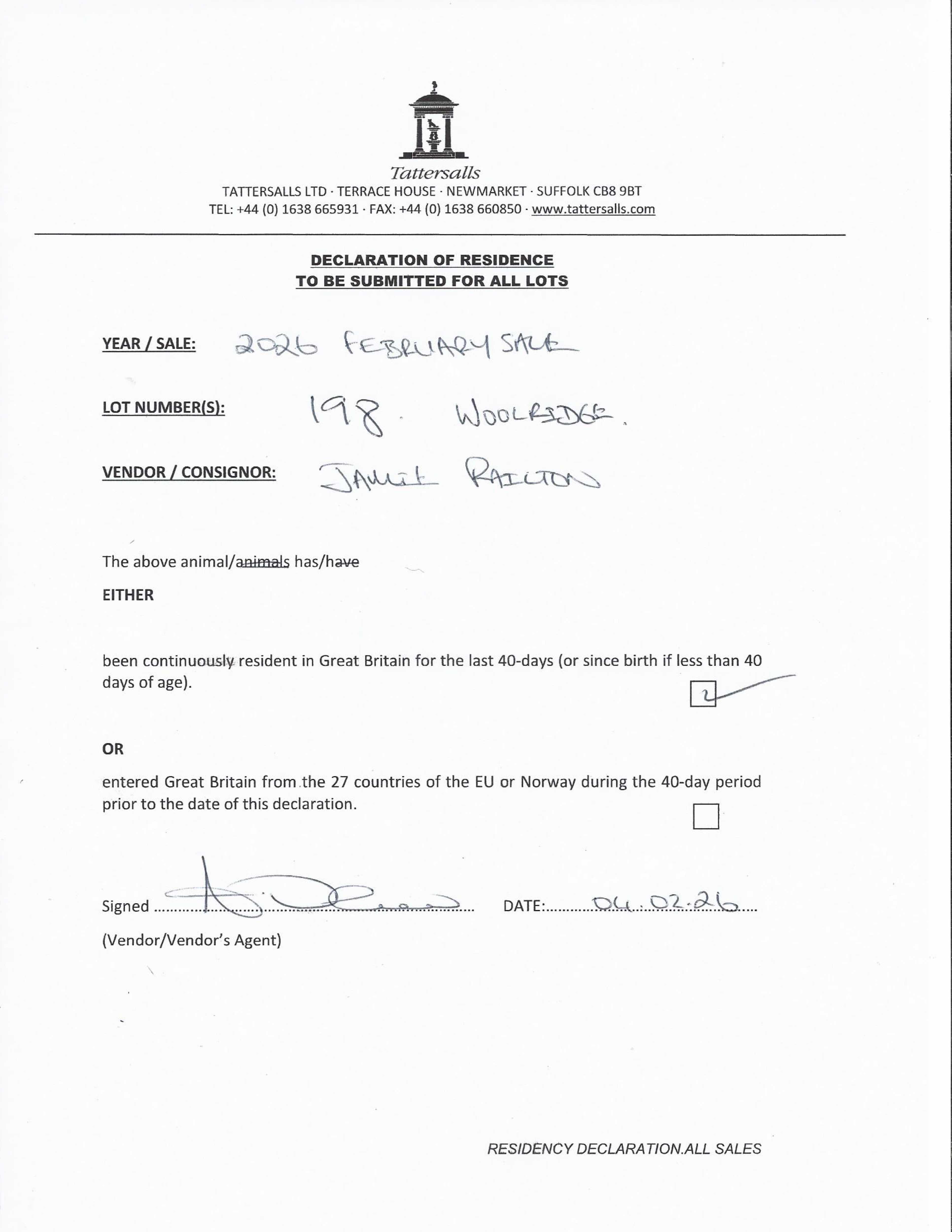 Consignor: Jamie Railton (Agent)
