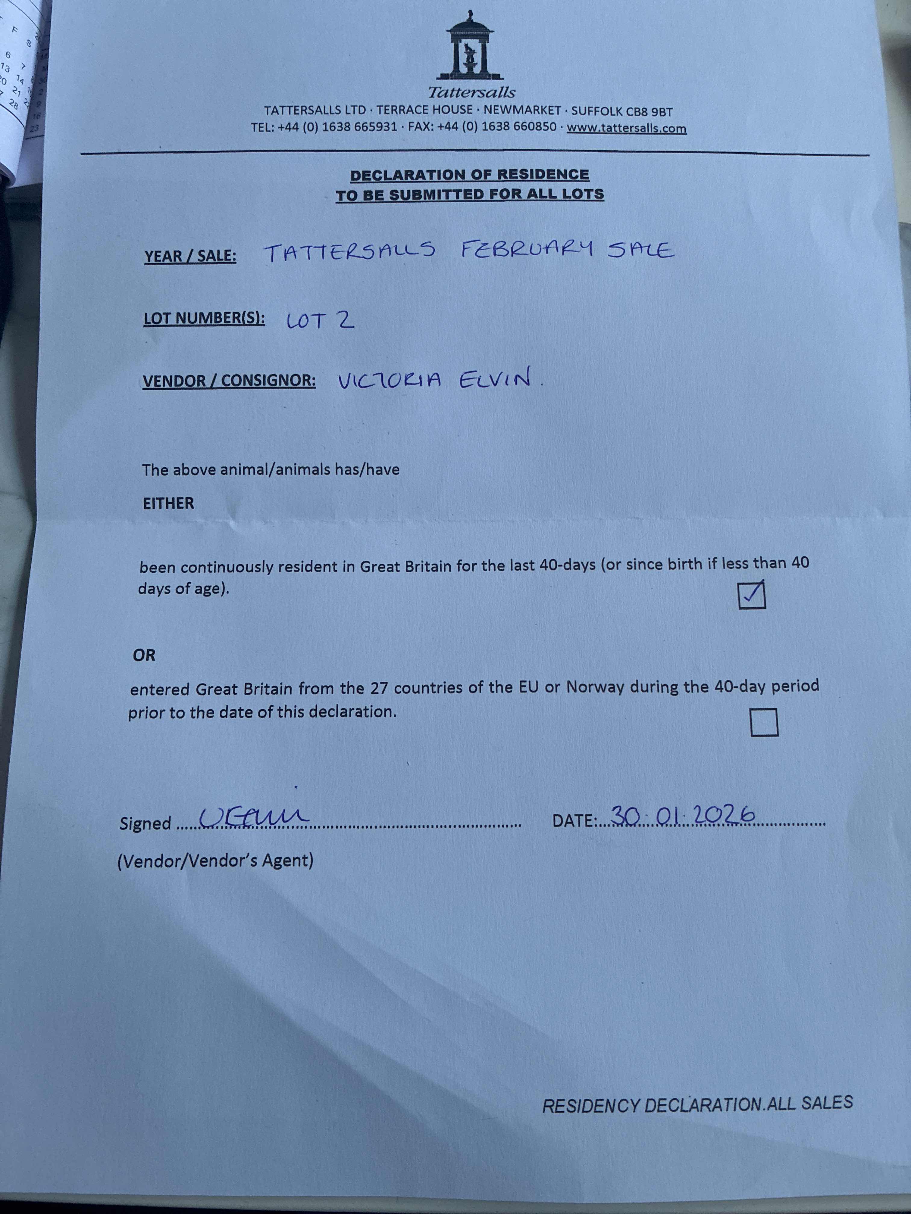 Consignor: Mrs Victoria Elvin