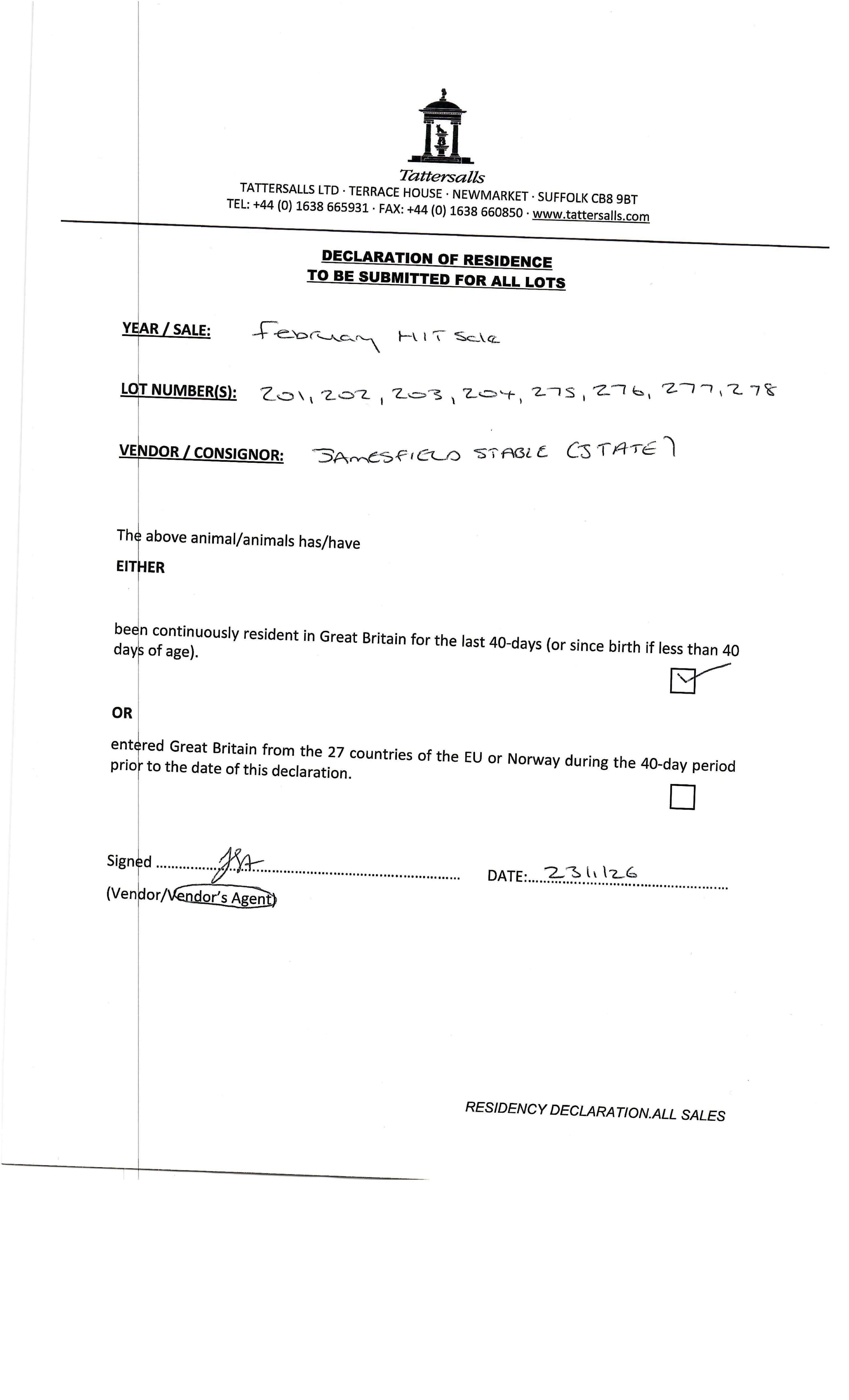 Consignor: Jamesfield Stables (J. Tate)