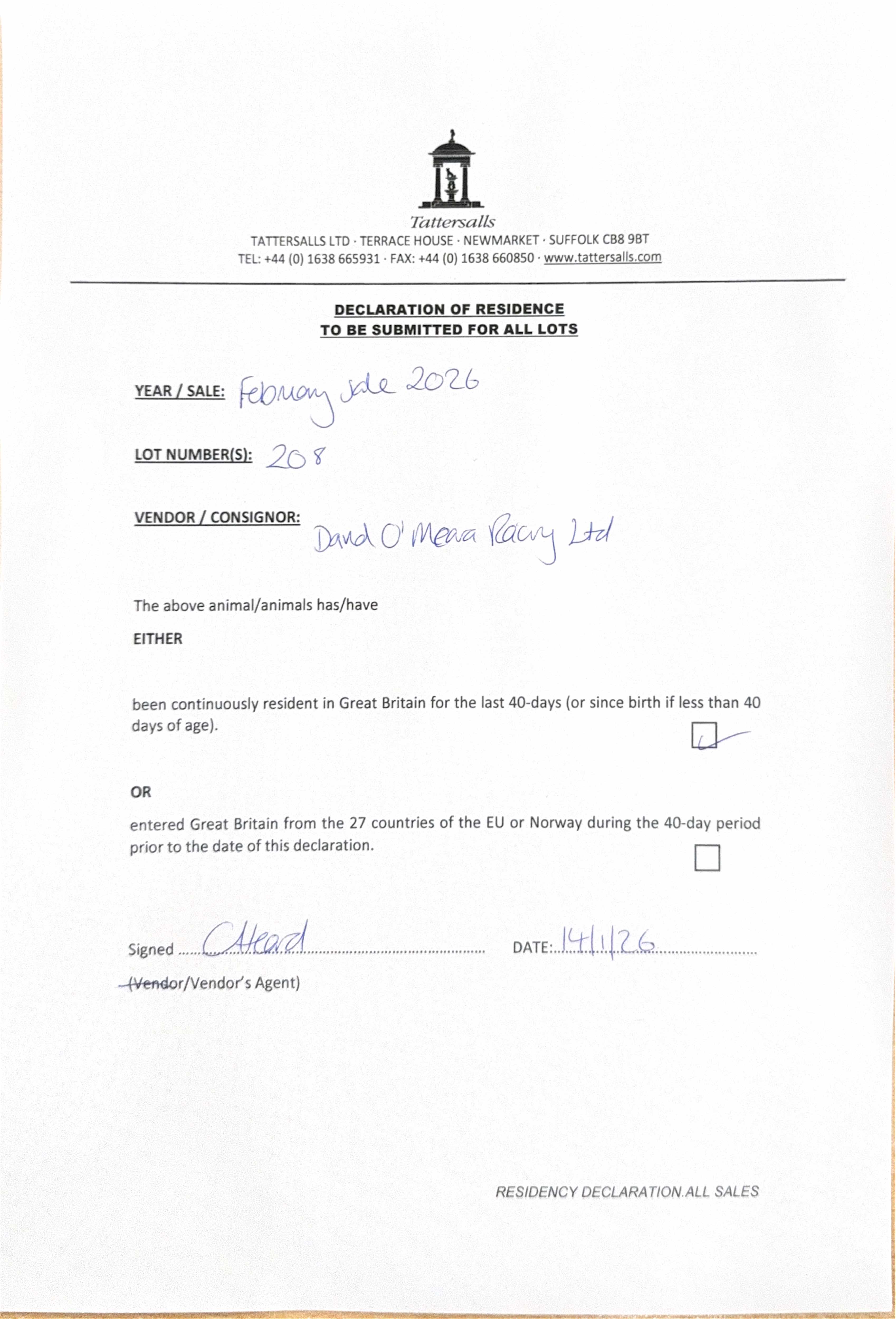 February Sale 2024 lot 277 Zu Run (GB) (G. by Zoustar (AUS)), Jamie Railton (Agent)=>DML Racing 10,000 gns