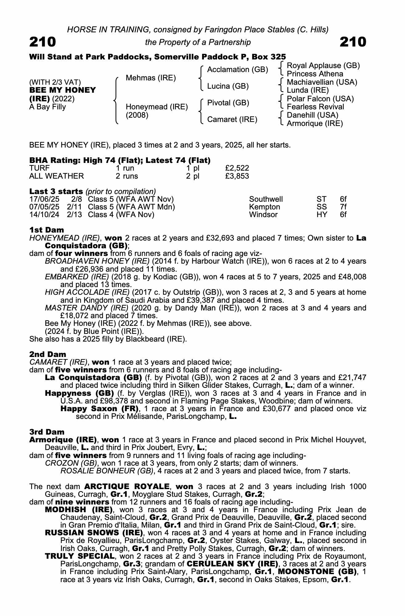 July Sale 2022 lot 20 Broadhaven Honey (IRE) (M. by Harbour Watch (IRE)), Byerley Stud=>Vendor 10,000 gns