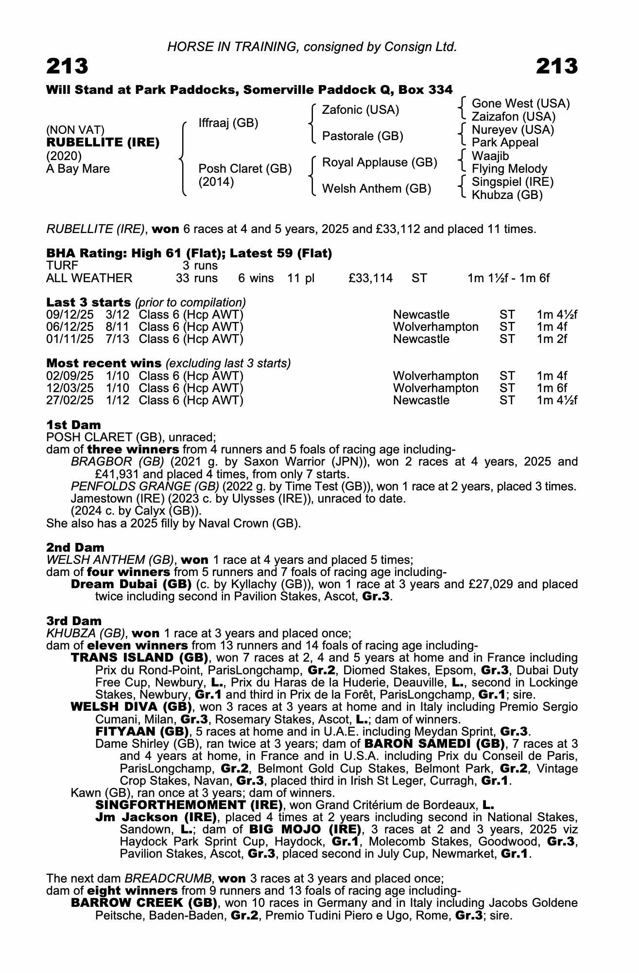 Online Sale - 13th August 2025 lot 75 Penfolds Grange (GB) (G. by Time Test (GB)), Park Lodge Stables (H. Eustace)=>Mark Pattinson 10,500 gns