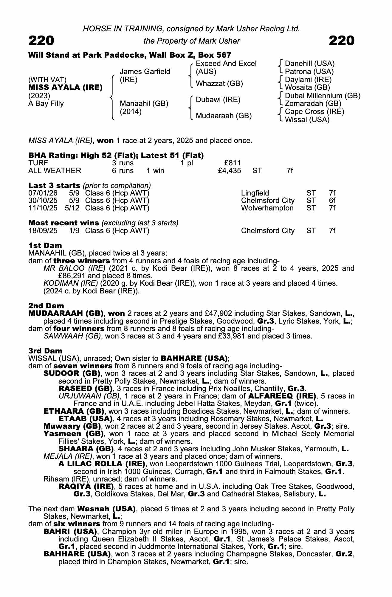 52| 2026 | Jan 19 | Wol | 50 | 12/1 | 6-10 | George Bass | a7.2s | 45 | 40 | ||
