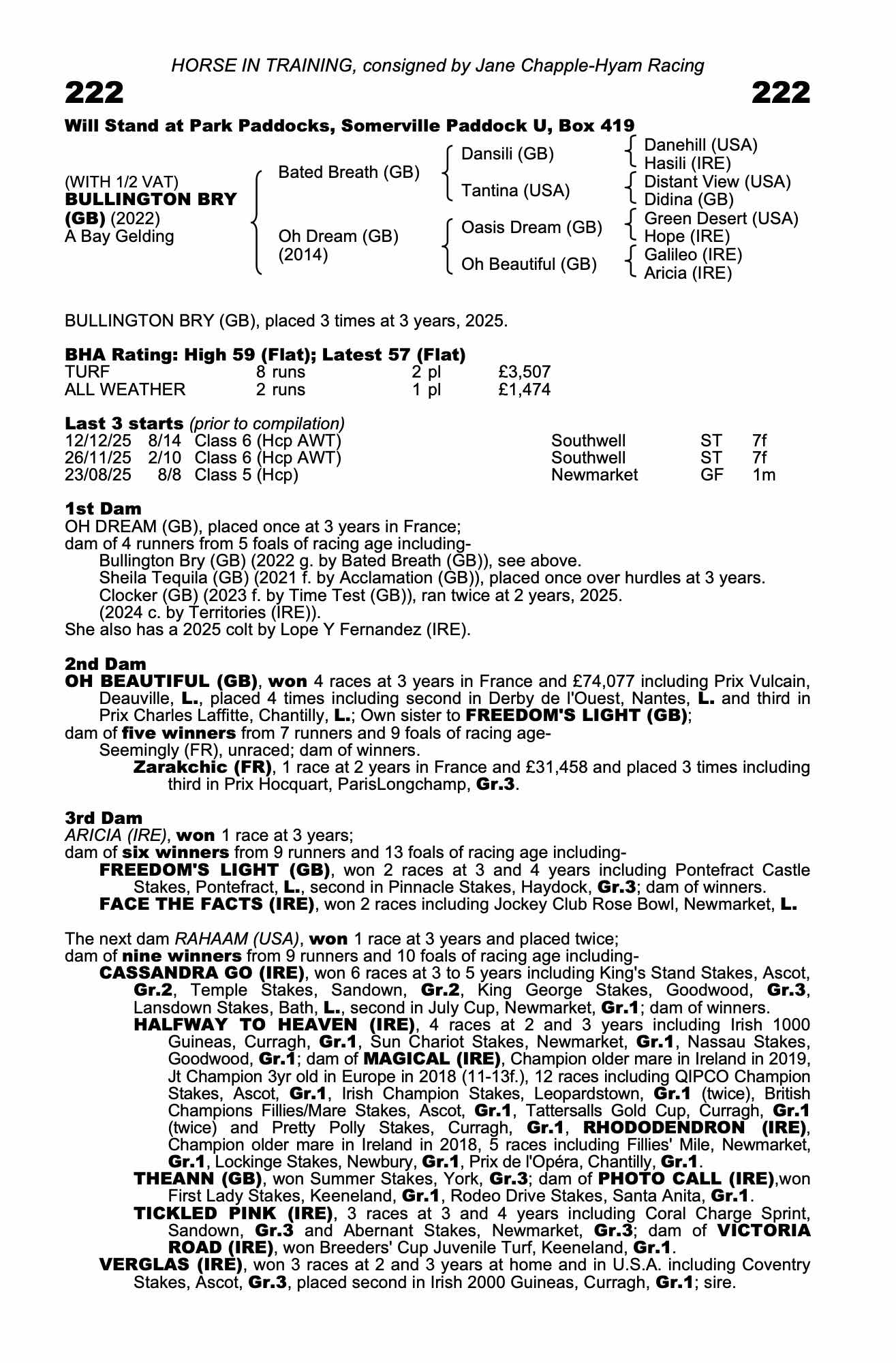 | 2025 | Dec 12 | Sou | 58 | 7/2f | 8-14 | Alexandra Egan | a7.1g | 51 | 48 | + | |