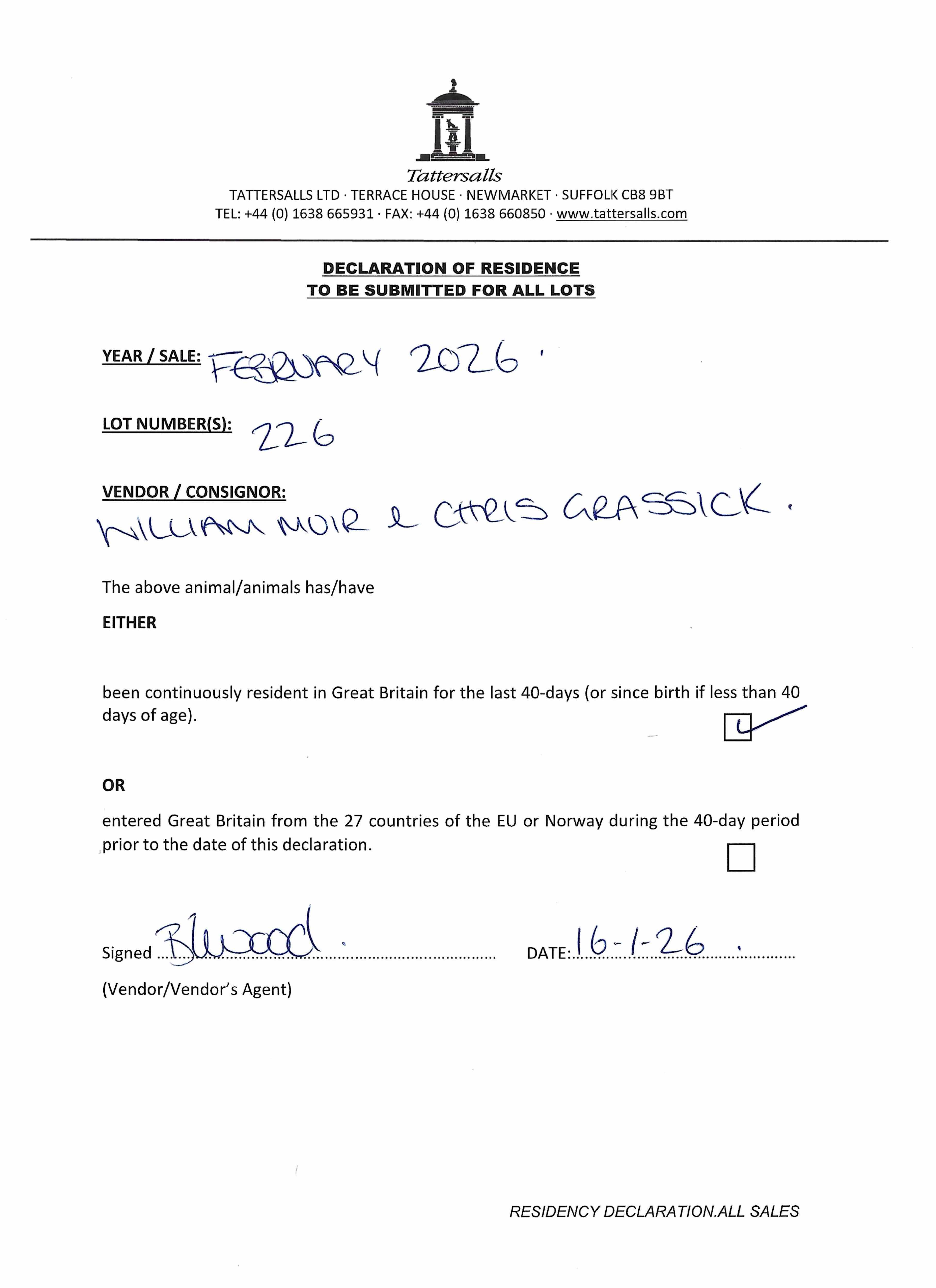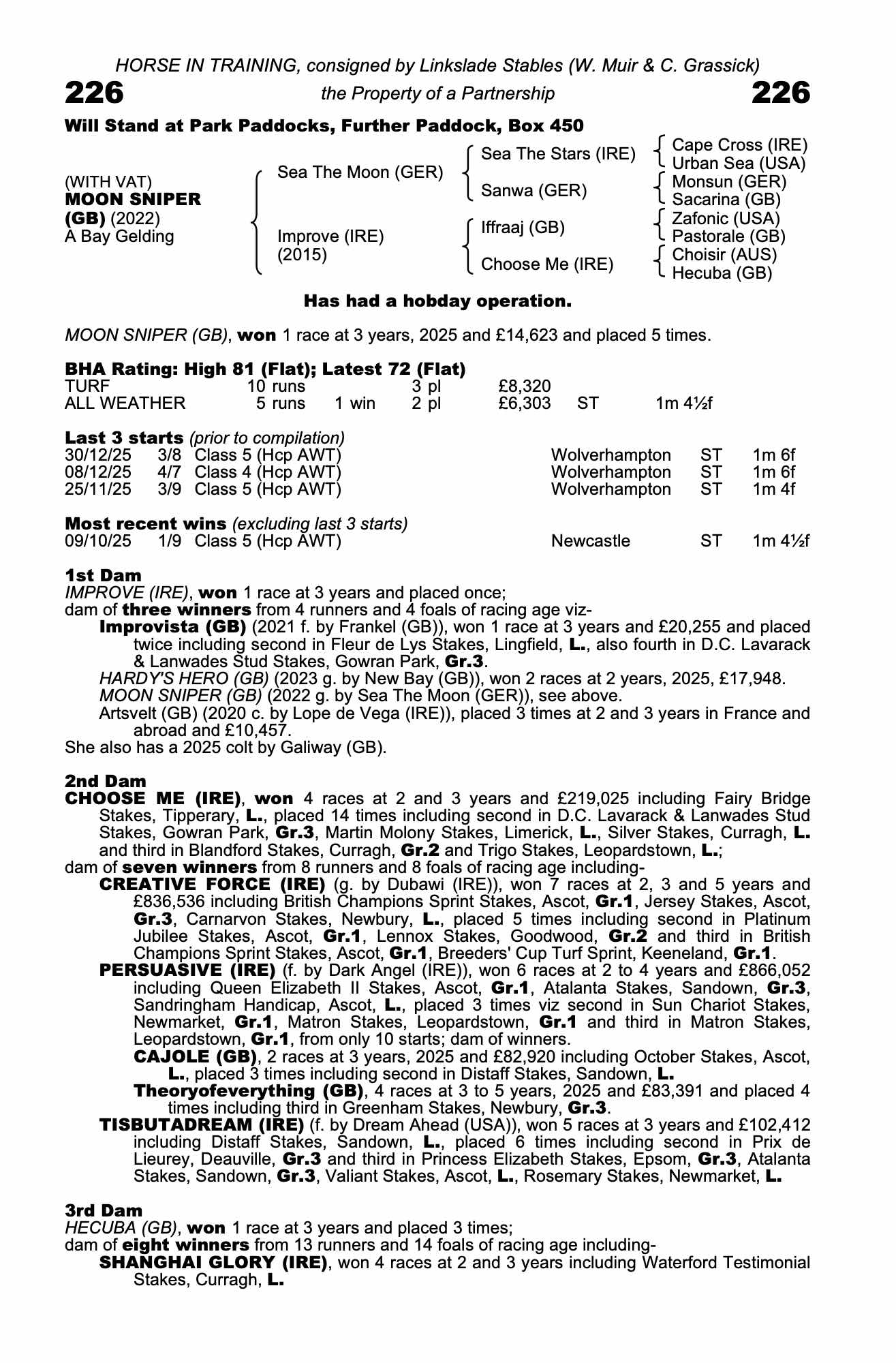 Consignor: Linkslade Stables (W. Muir & C. Grassick)