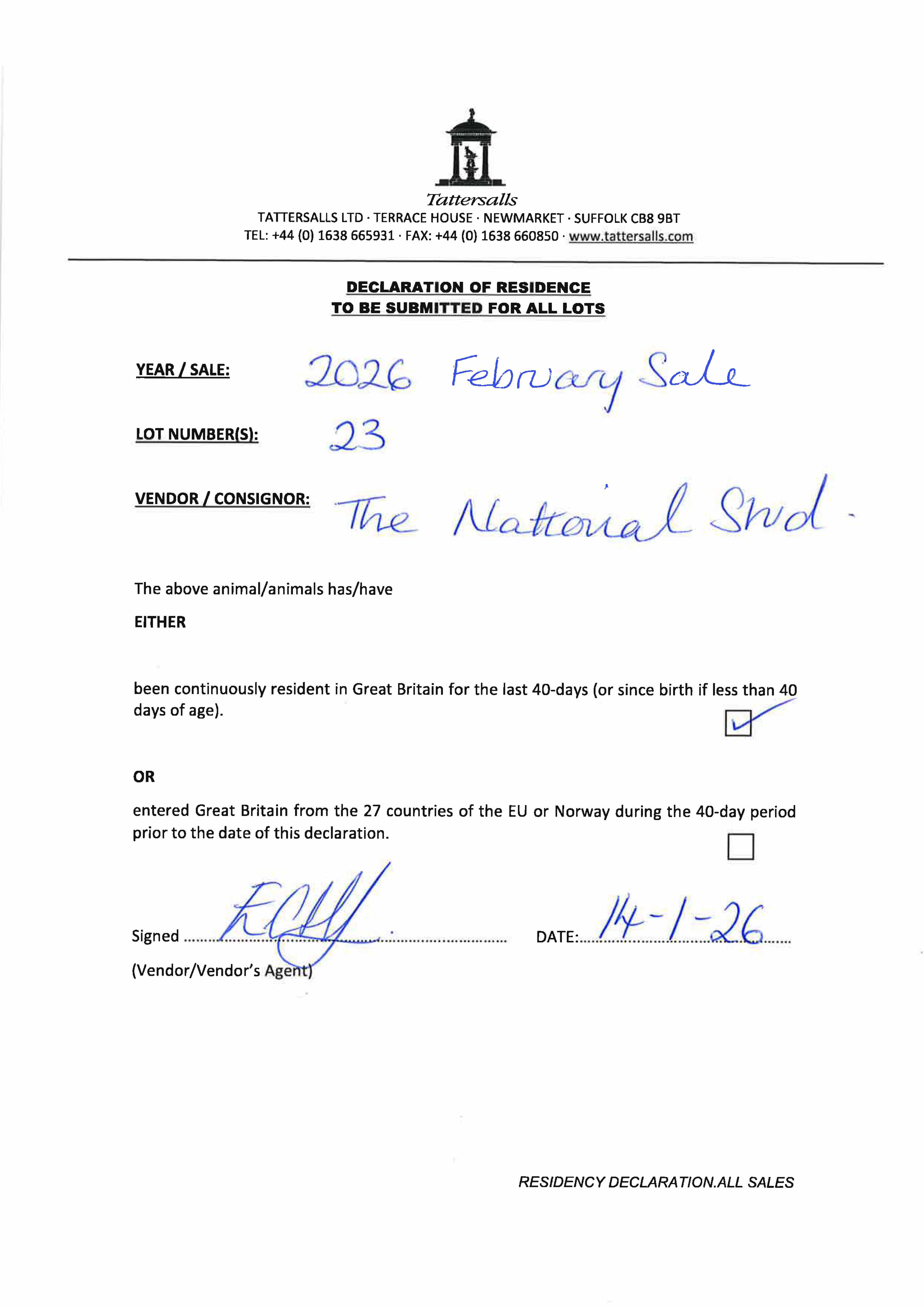 February Sale 2024 lot 45 Colour Code (IRE) (F. by Due Diligence (USA)), Dullingham Park=>Hurworth Bloodstock 34,000 gns