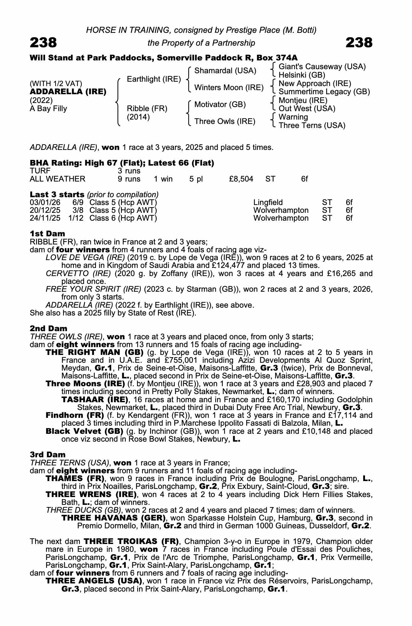 80| 2026 | Jan 19 | Wol | 66 | 12/1 | 1-10 | Marco Ghiani | a6.1s | 75 | 80 | ||