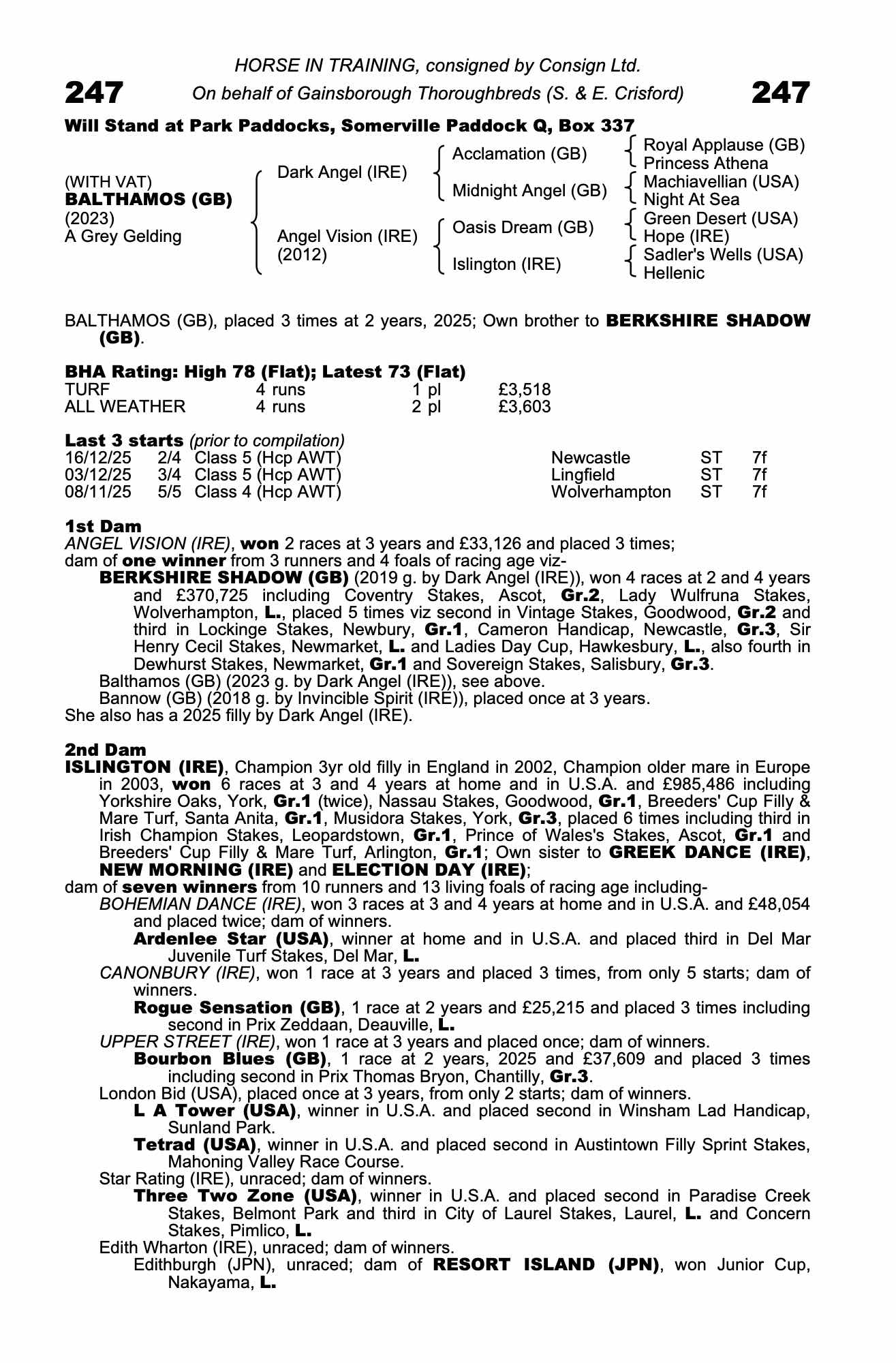 77| 2025 | Dec 16 | Nwc | 74 | 7/4f | 2-4 | H | Harry Davies | a7.1s | -1 | 77 | |