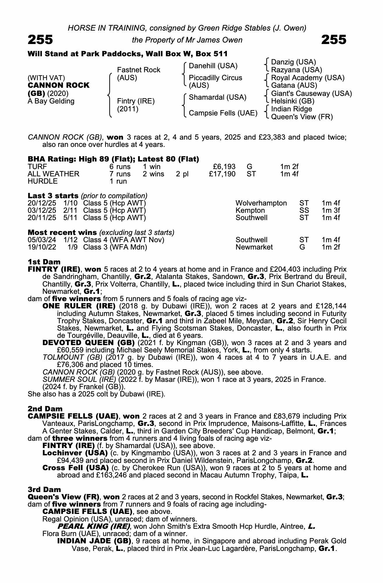 | 2025 | Dec 20 | Wol | 75 | 11/4jf | 1-10 | B | Pat Cosgrave | a12.2s | 65 | 85 | + |