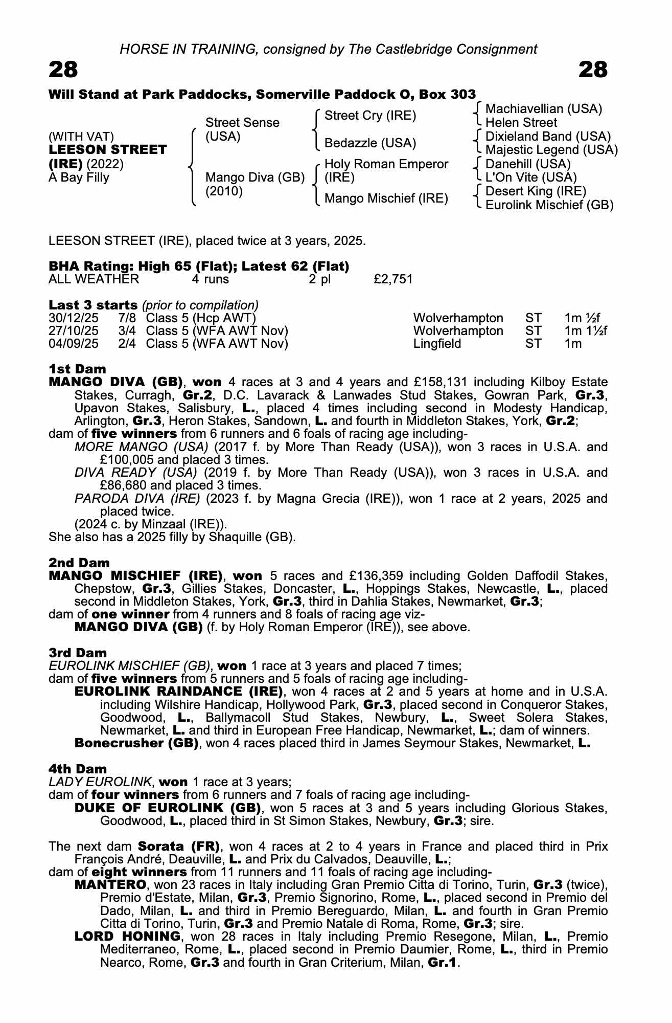 LEESON STREET (IRE), placed 3 times at 3 and 4 years, 2026.