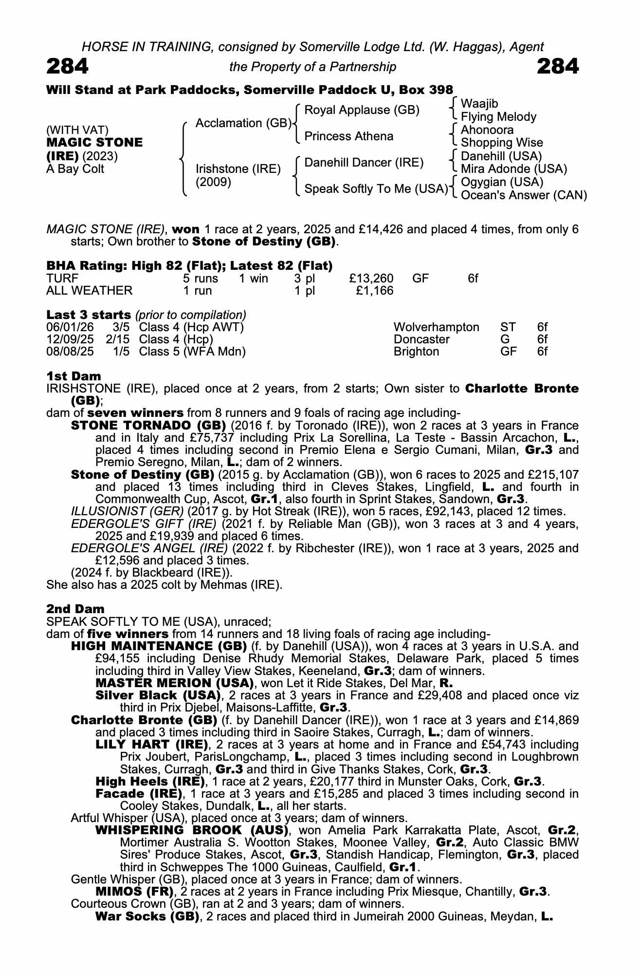 Consignor: Somerville Lodge Ltd. (W. Haggas), Agent