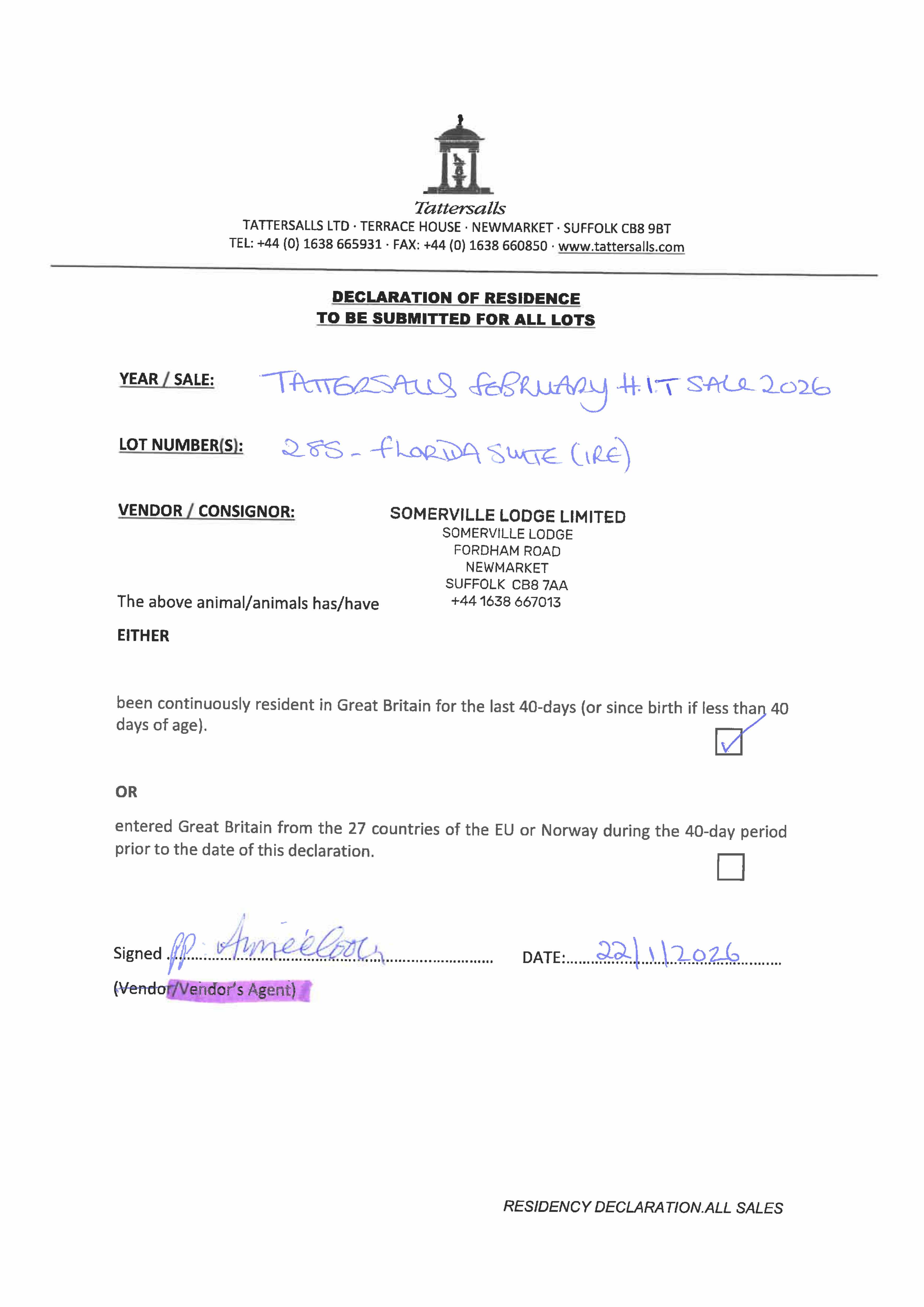 Consignor: Somerville Lodge Ltd. (W. Haggas), Agent