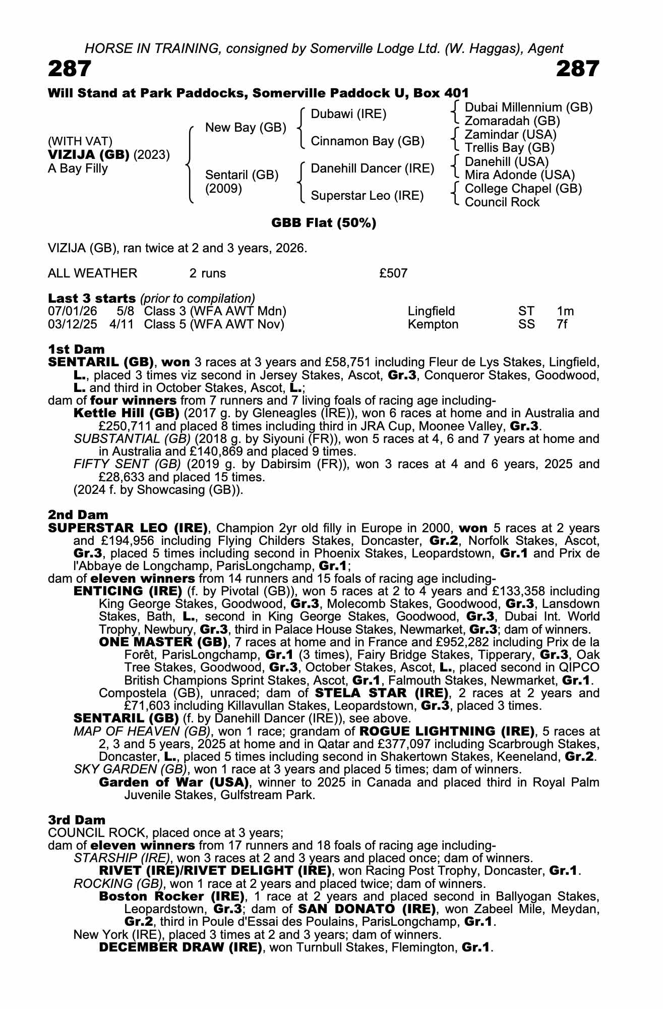 Consignor: Somerville Lodge Ltd. (W. Haggas), Agent