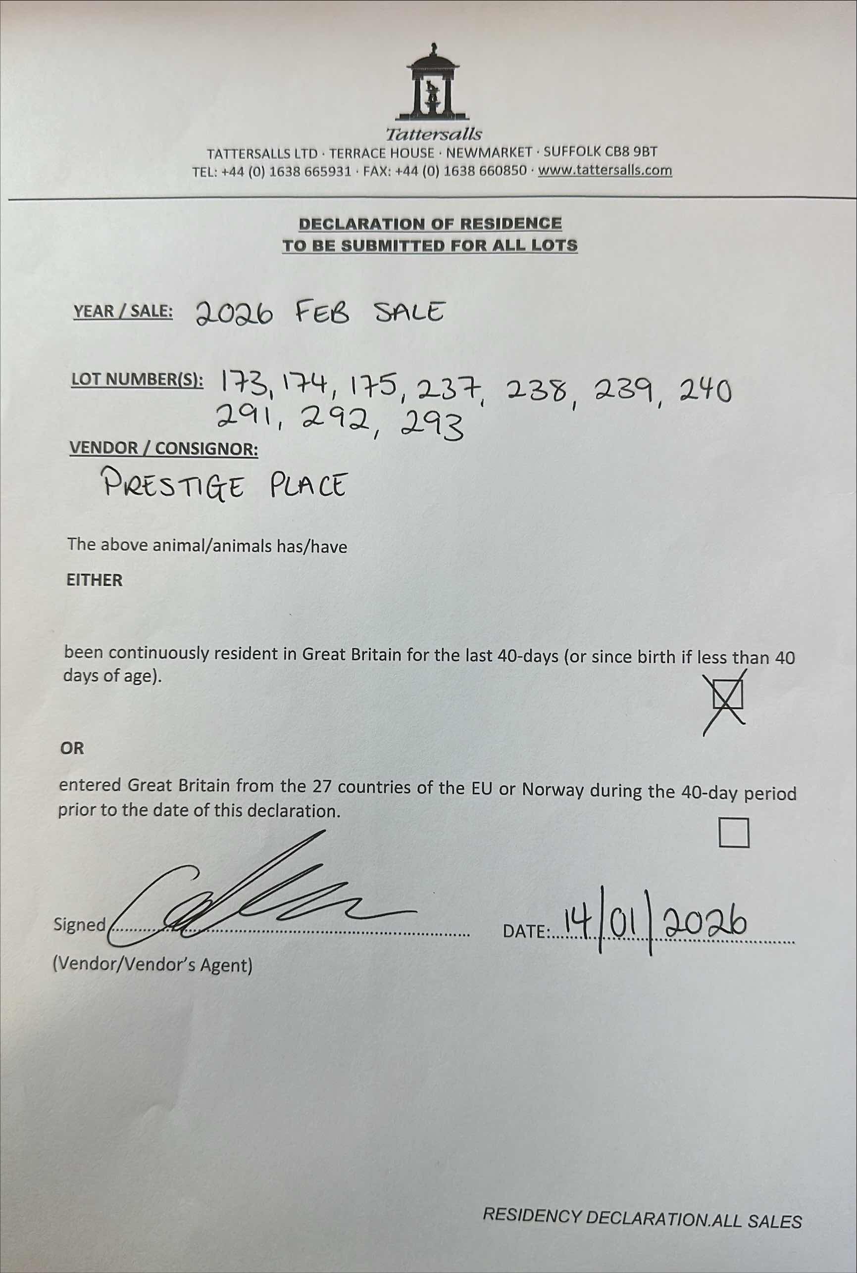 Consignor: Prestige Place (M. Botti)