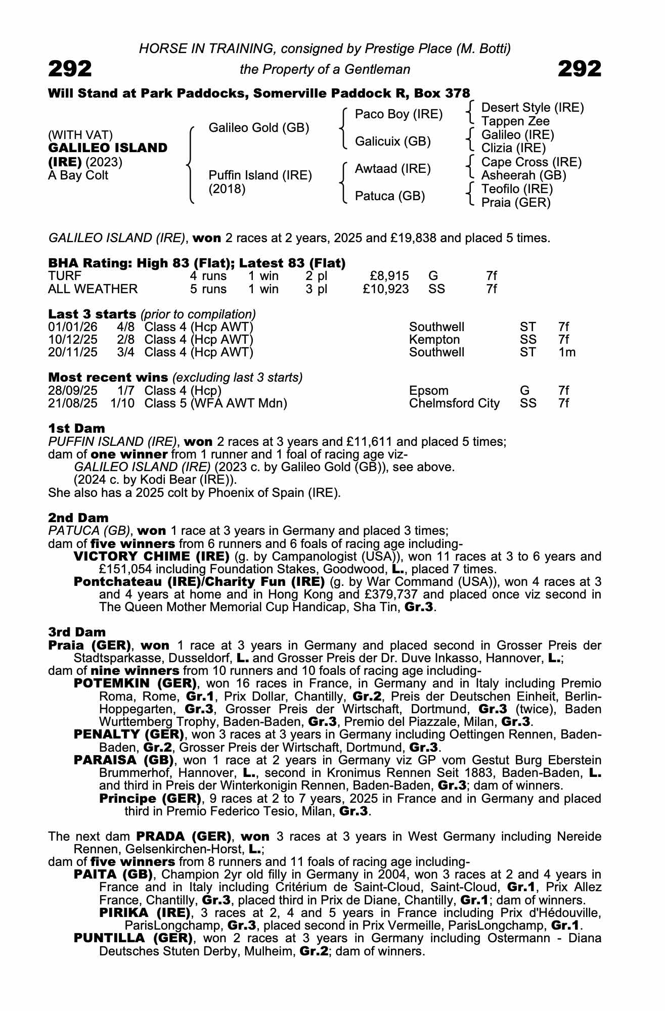 85| 2026 | Jan 1 | Sou | 83 | 9/2 | 4-8 | Marco Ghiani | a7.1g | 58 | 81 | ||