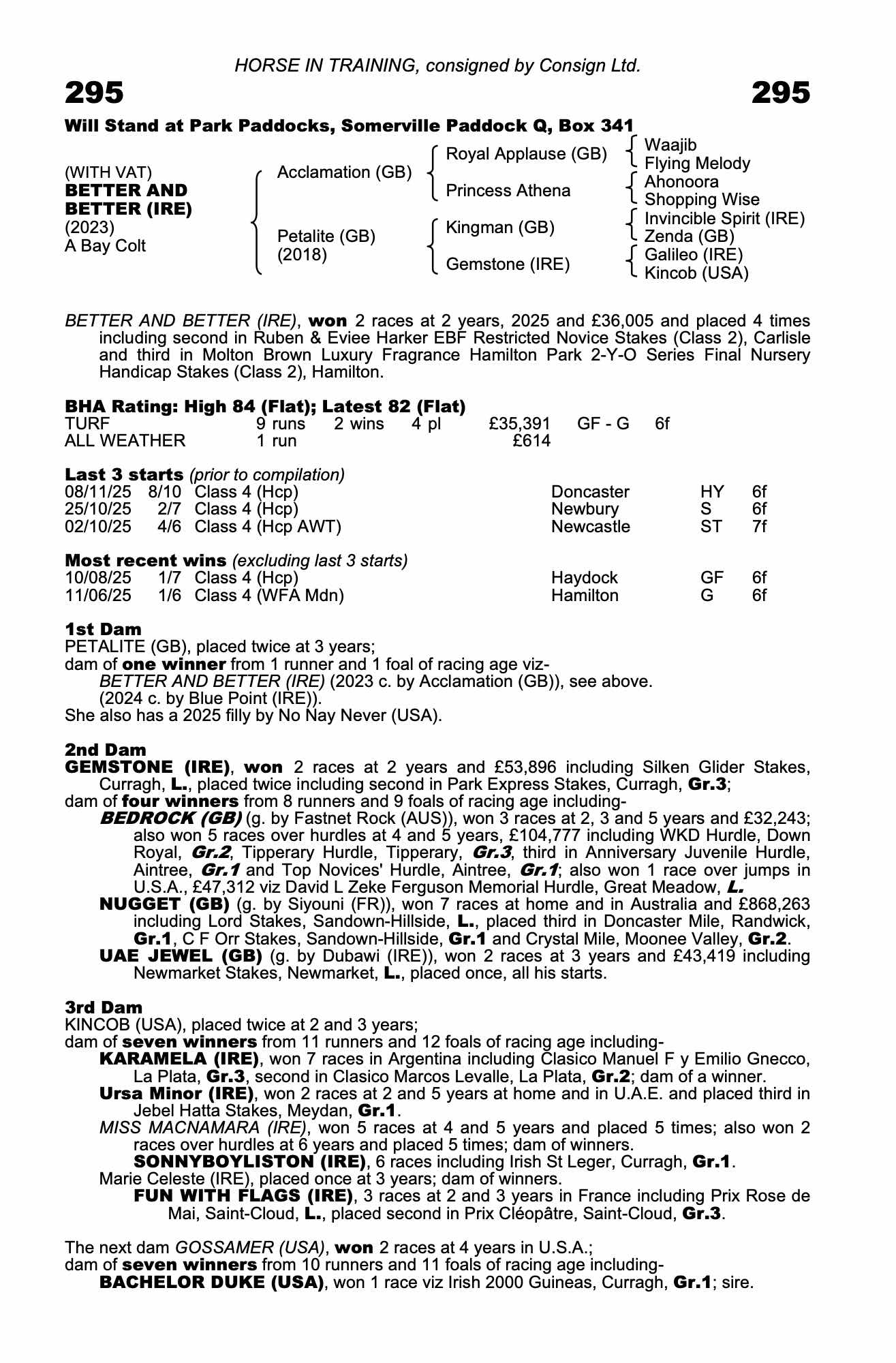 84| 2025 | Nov 8 | Don | 82 | 14/1 | 8-10 | 0 | Oisin McSweeney | 6v | 38 | 59 | |