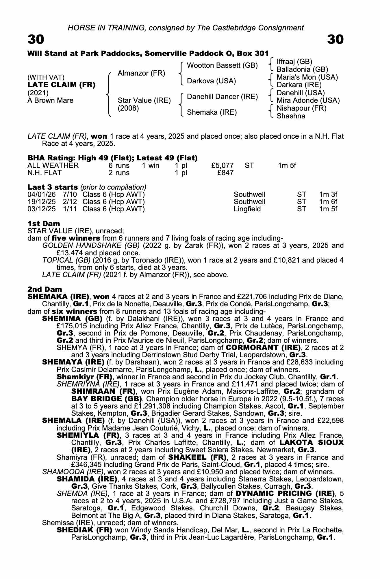 | 2025 | Dec 19 | Sou | 48 | 8/1 | 2-12 | Rowan Scott | a14.1g | 51 | 56 | ||