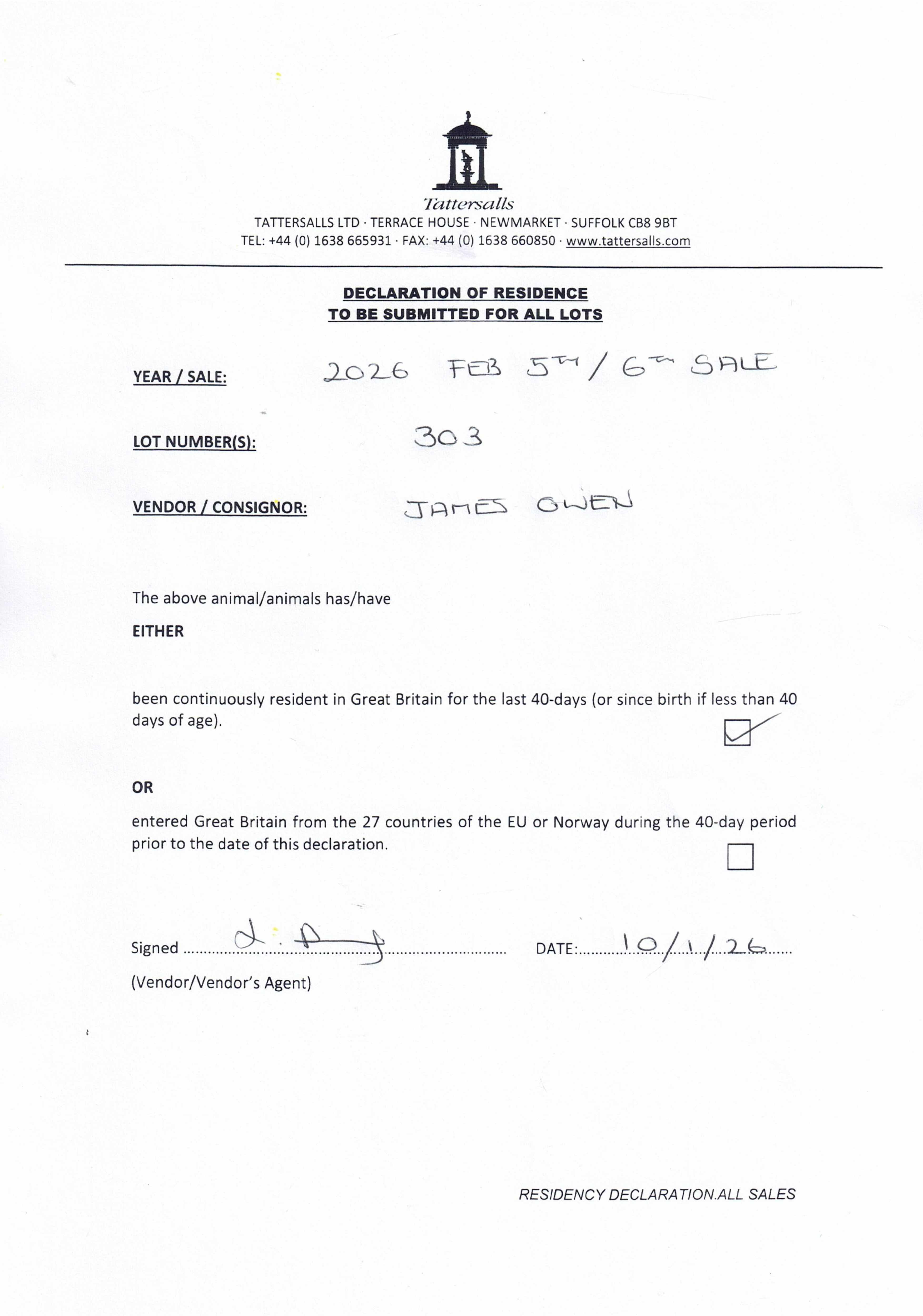 Consignor: Green Ridge Stables (J. Owen)
