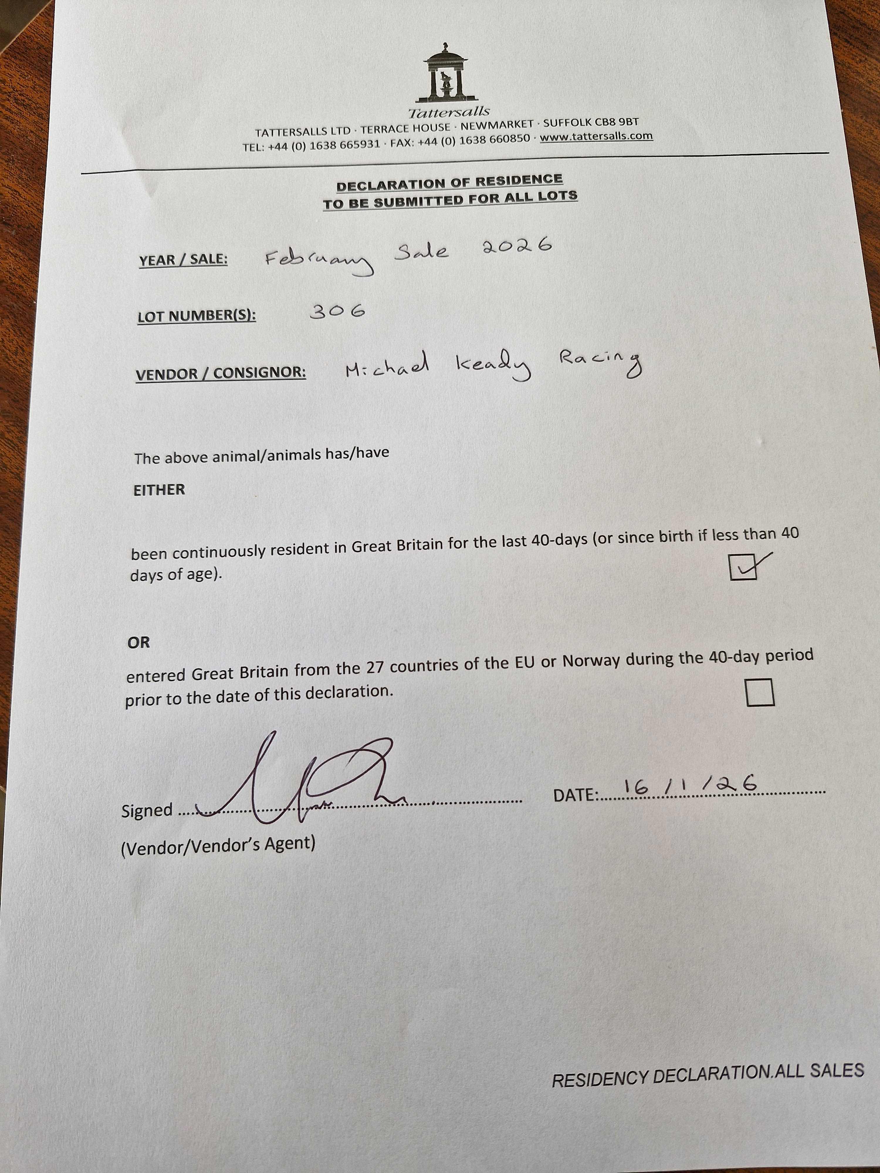 December Mare Sale 2024 lot 2052 Suffrajet (IRE) (M. by Golden Horn (GB)), Kingsley Park=>Vendor 4,000 gns