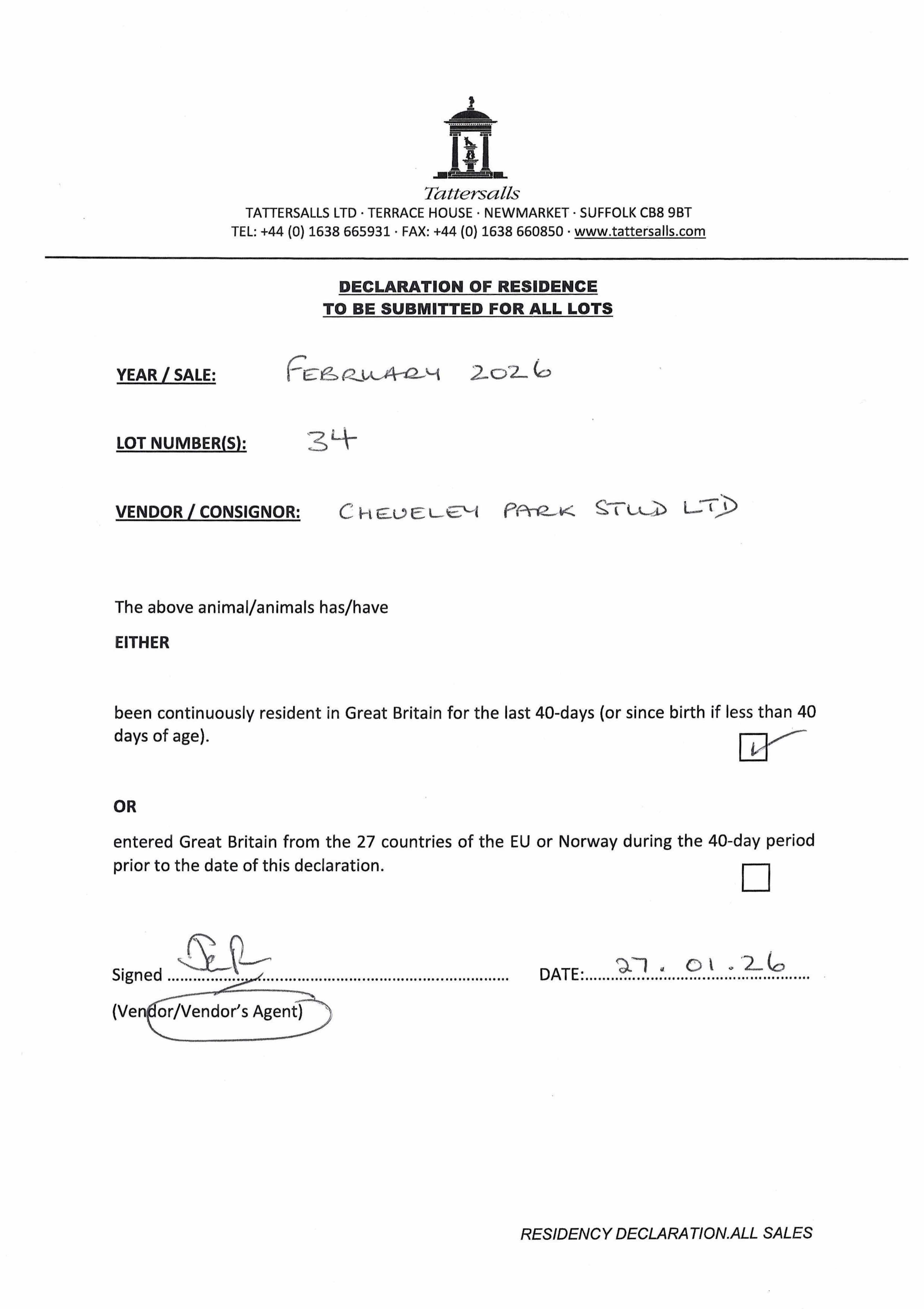 Consignor: Cheveley Park Stud Ltd.