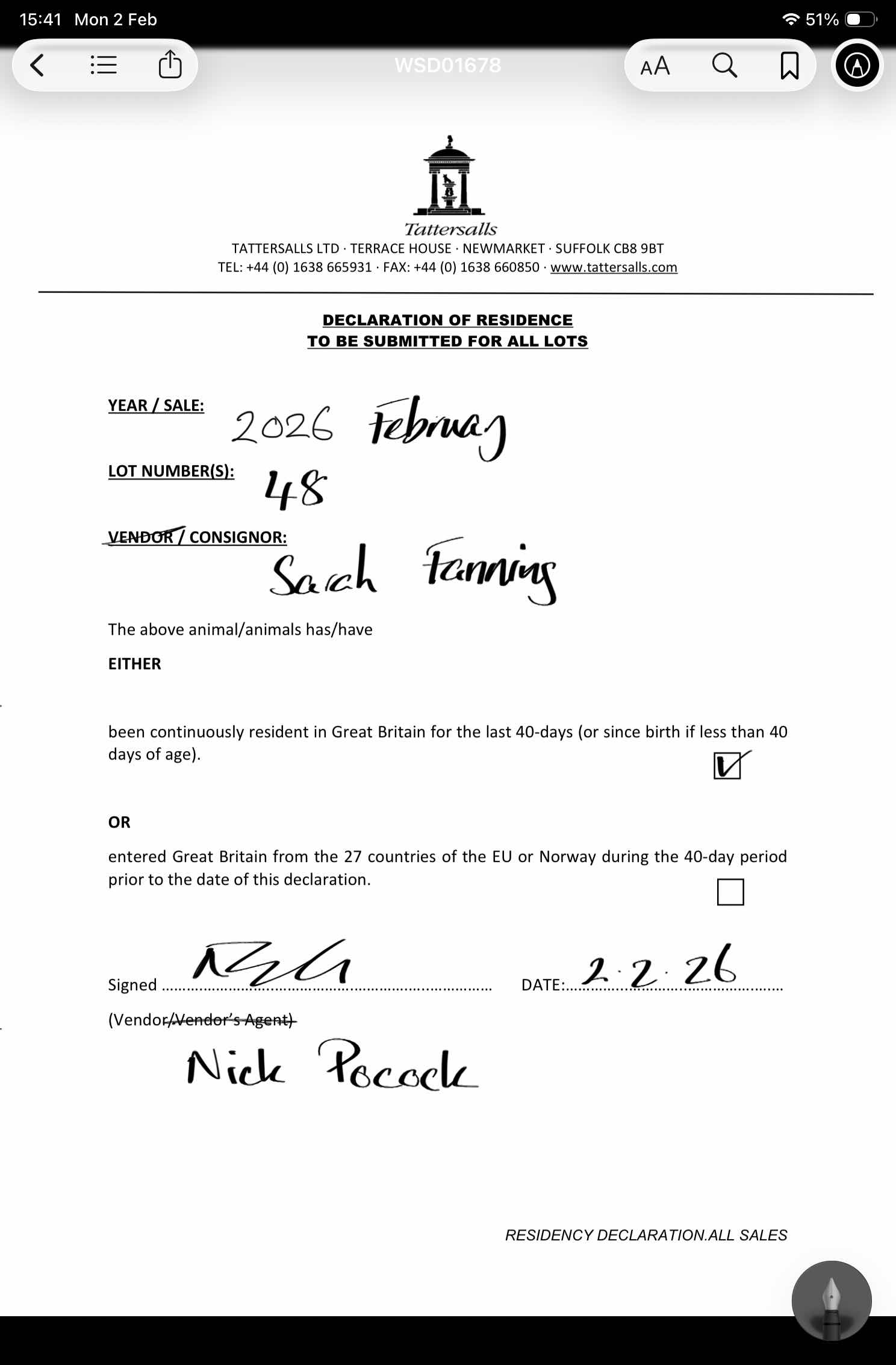 Consignor: S Fanning Sales