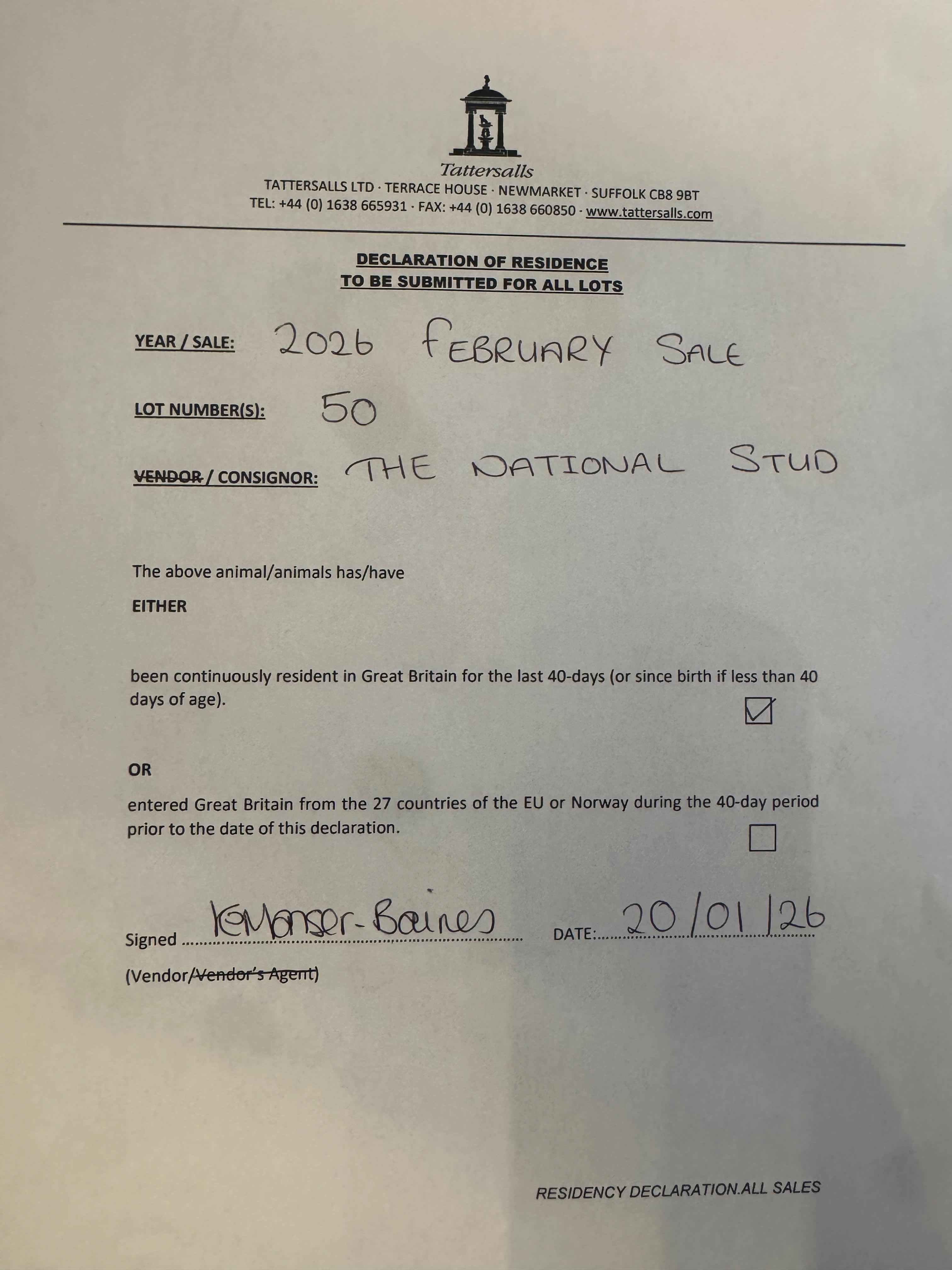 Consignor: The National Stud Ltd.