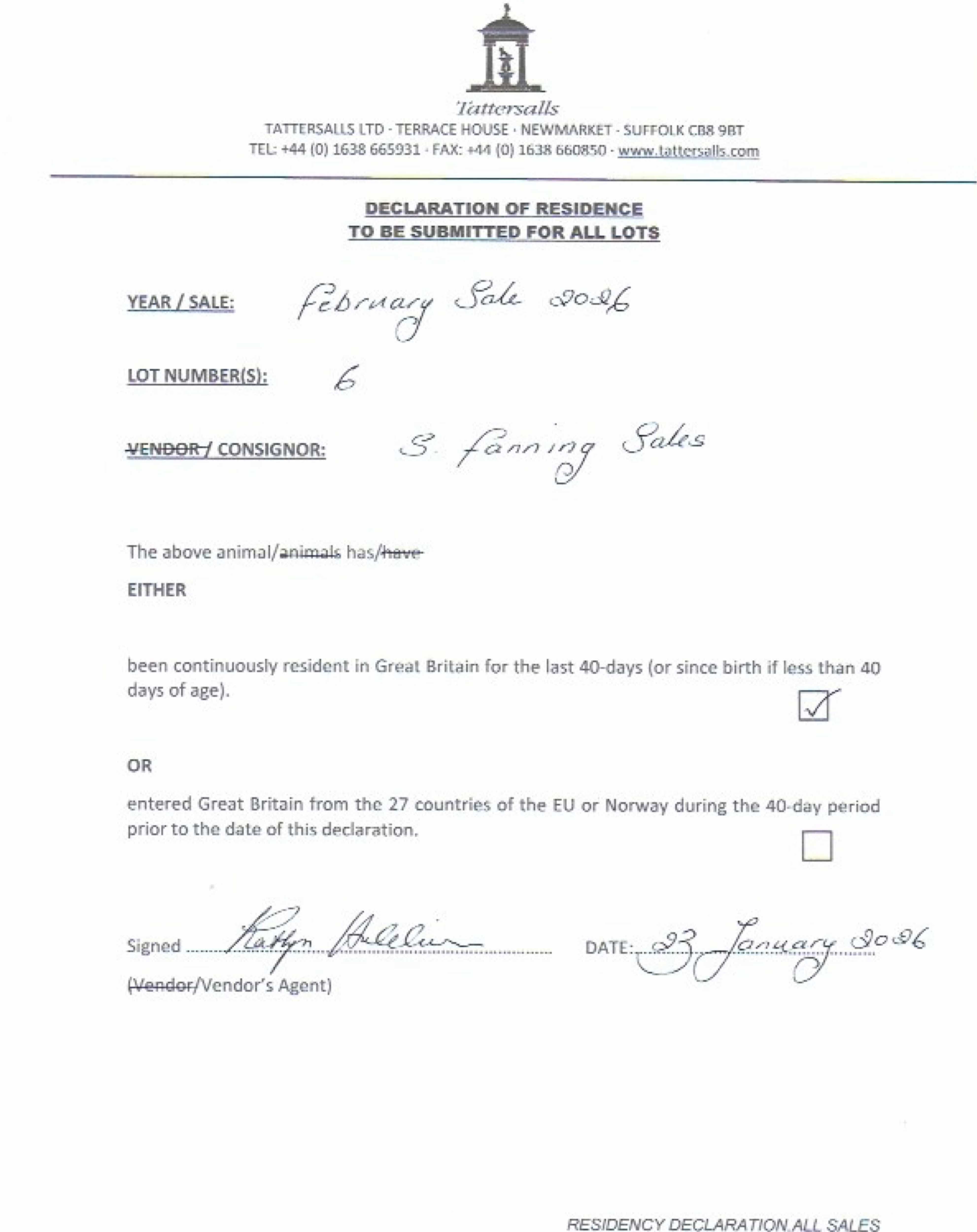 Consignor: S Fanning Sales