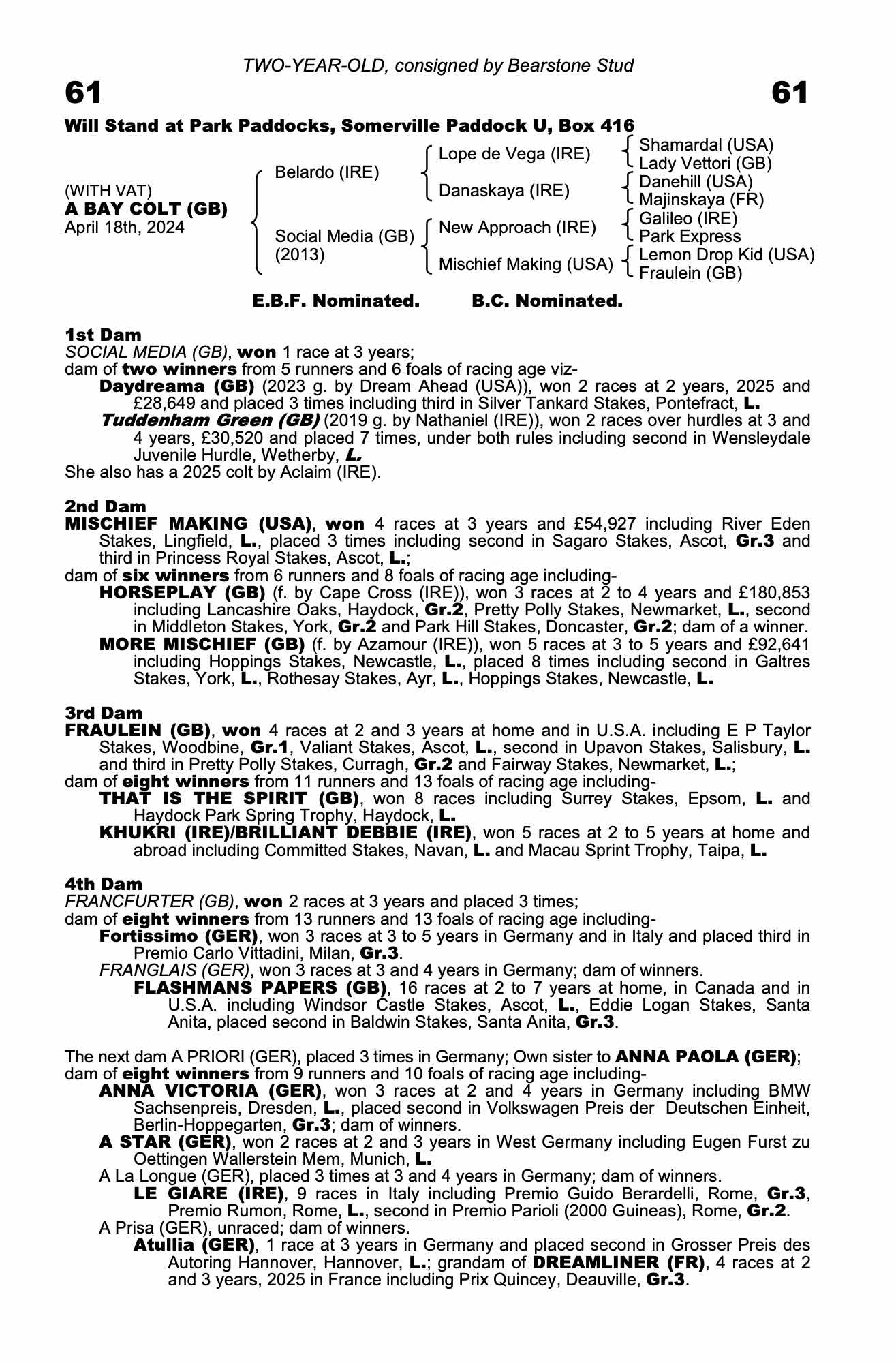 Consignor: Bearstone Stud