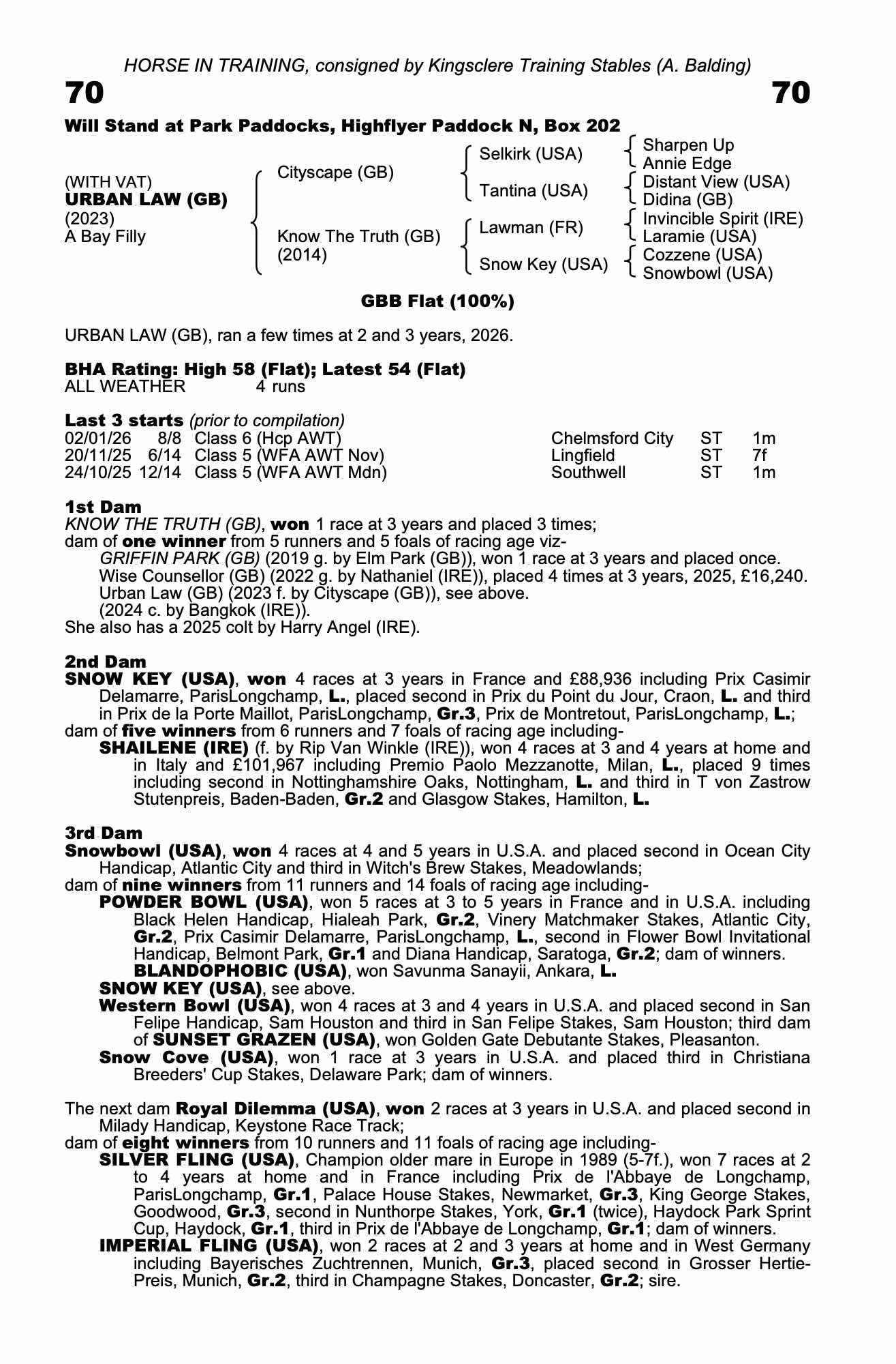 February Sale 2023 lot 73 Blink (GB) (F. by Passing Glance (GB)), Park House Stables (A. Balding)=>Katherine Tibbitts 1,000 gns