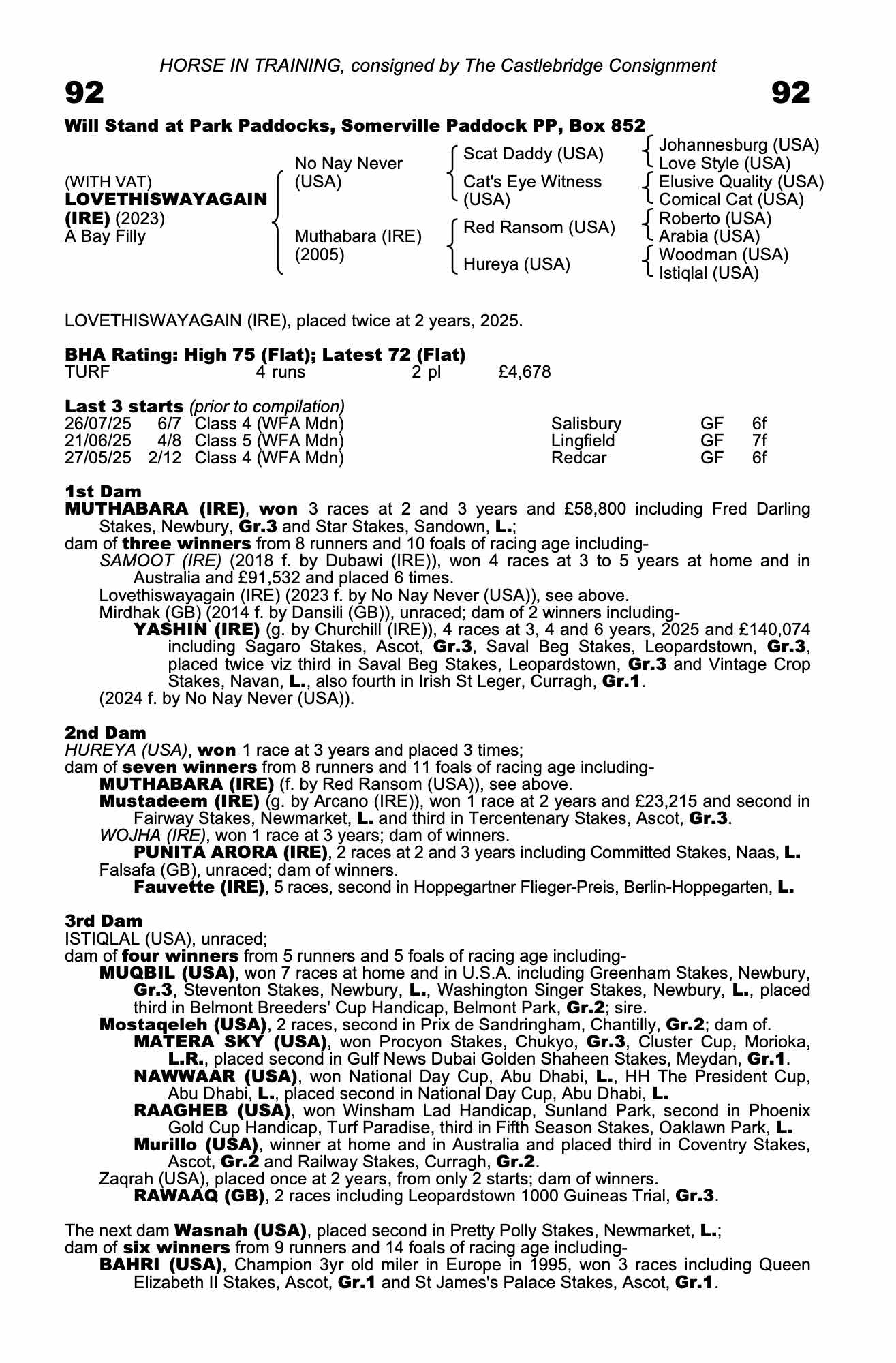 July Sale 2020 lot 288 Raajihah (GB) (F. by Tamayuz (GB)), Shadwell Stud=>Mitchell Hunt 1,000 gns