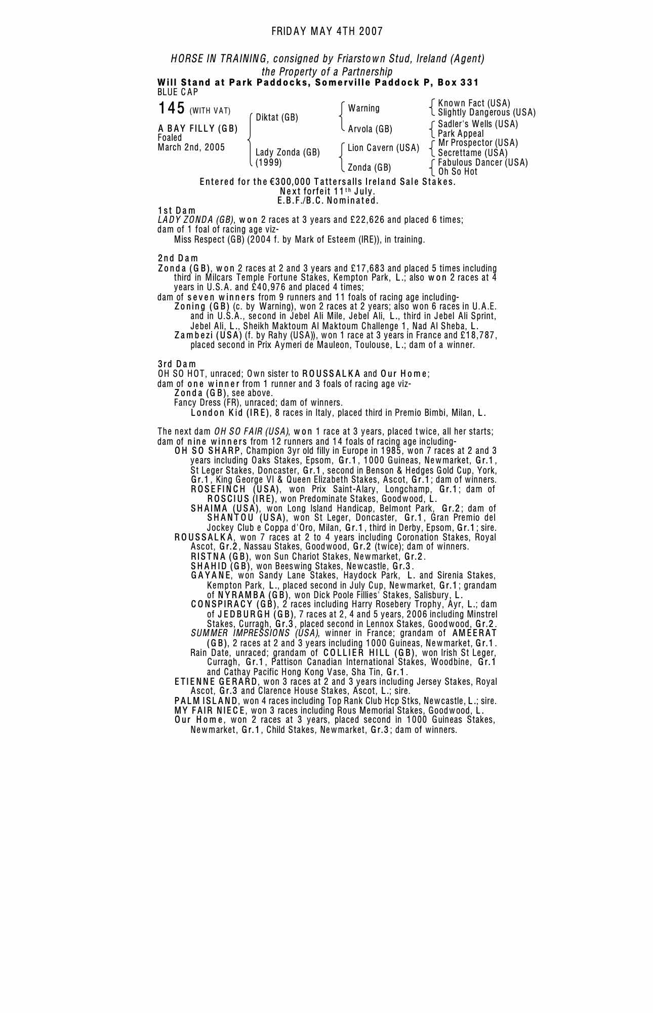 October Yearling Sale, Book 2 2005 lot 821 F. by Mark of Esteem (IRE) 2004, Stanley House Stud=>R O'Ryan 10,500 gns