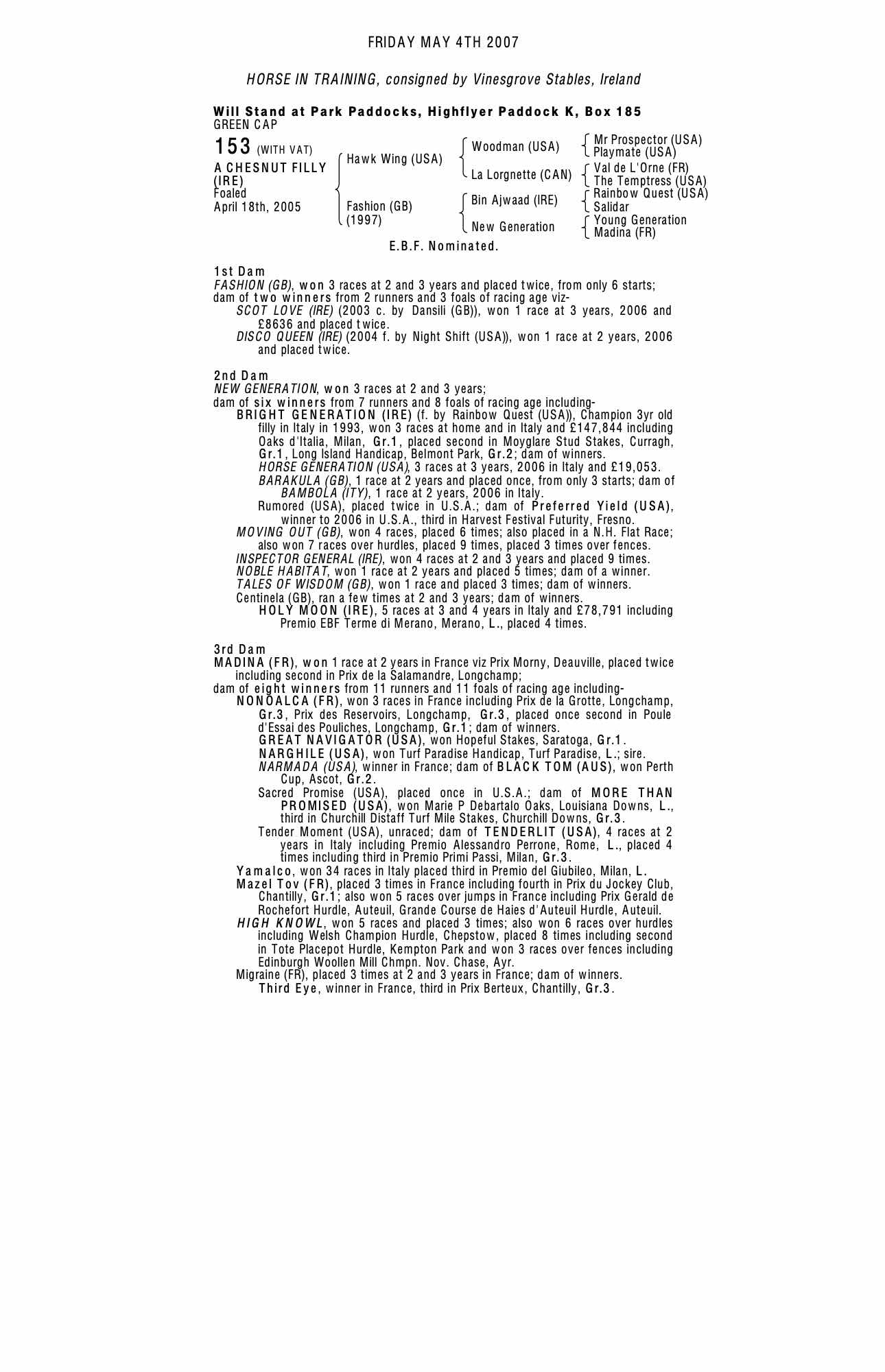 October Yearling Sale, Book 1 2005 lot 225 F. by Night Shift (USA) 2004, Rossenarra Stud, Ireland=>David Redvers Bloodstock 17,000 gns