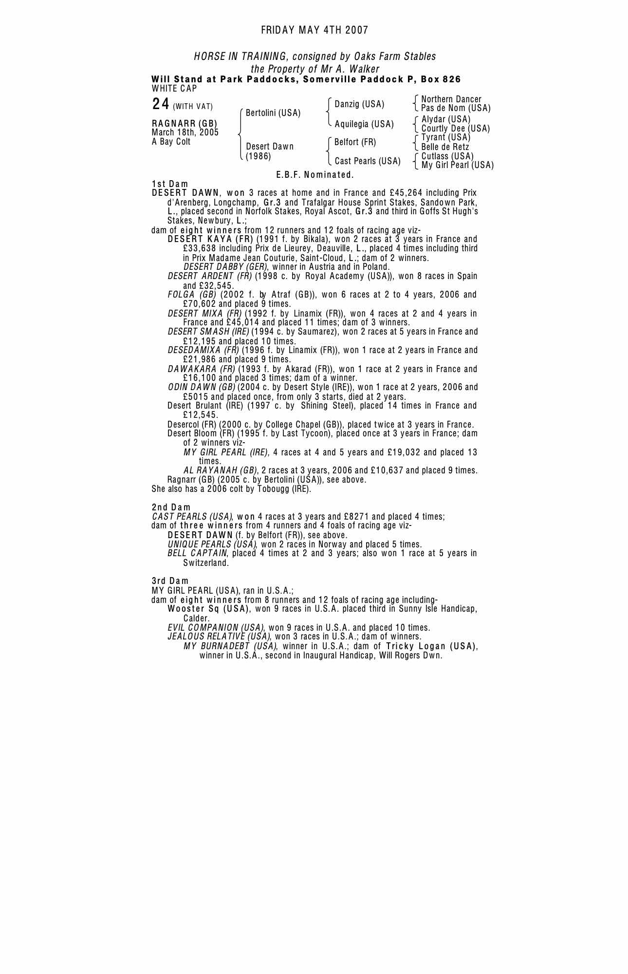 December Mare Sale 2002 lot 1621 Desert Kaya (FR) (M. by Bikala), Haras d'Ouilly, France=>Lot Not Sold 18,000 gns