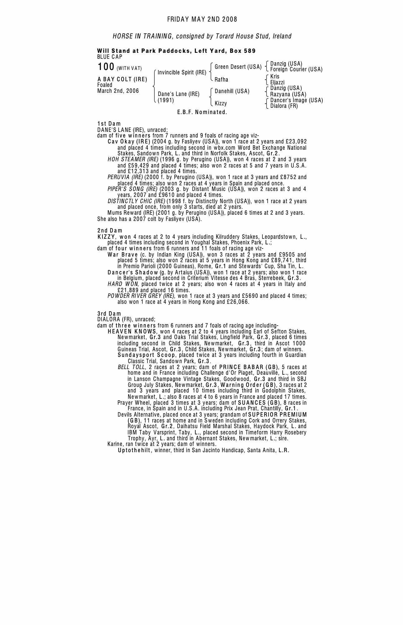 December Yearling Sale 2007 lot 142, Ballyhane Stud, Ireland=>P Donworth 3,000 gns