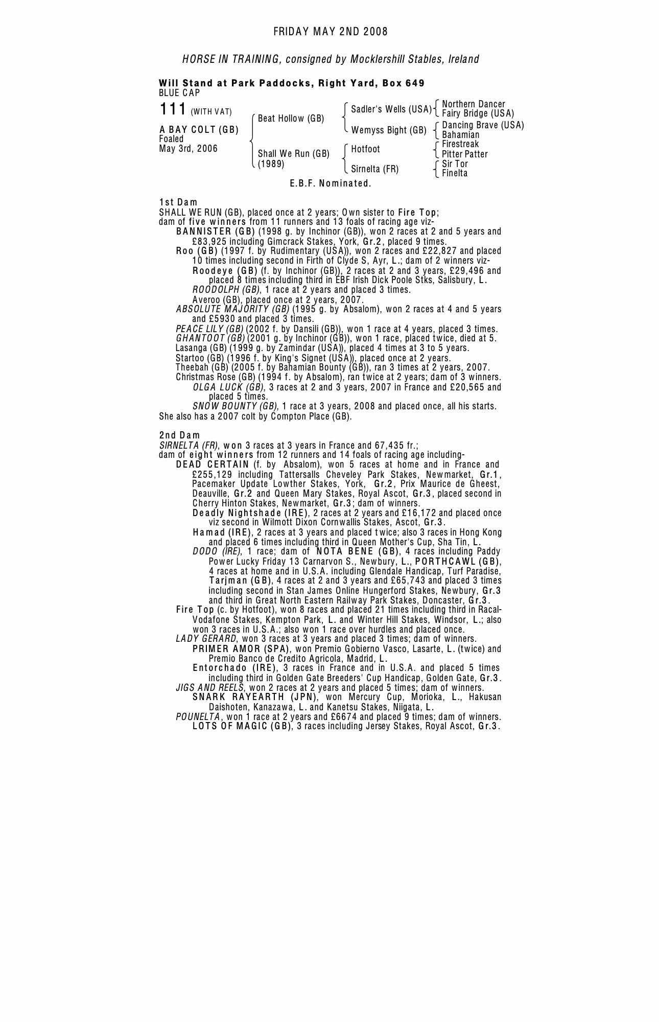 October Yearling Sale, Book 2 2007 lot 1036, Jamie Railton, Agent=>Willie Browne 25,000 gns