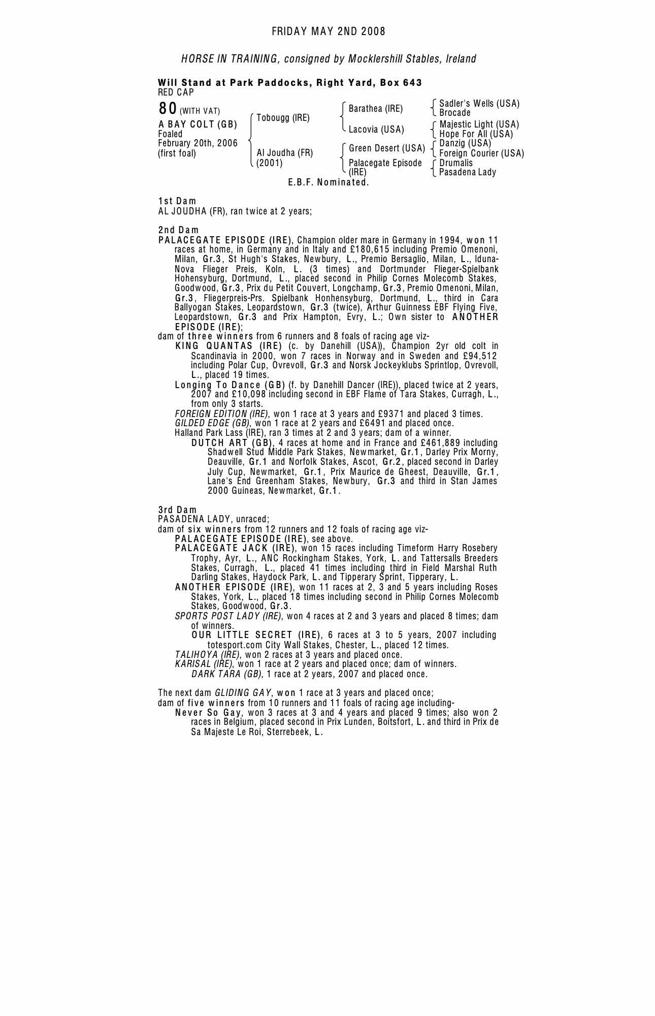 Consignor: Mocklershill Stables, Ireland