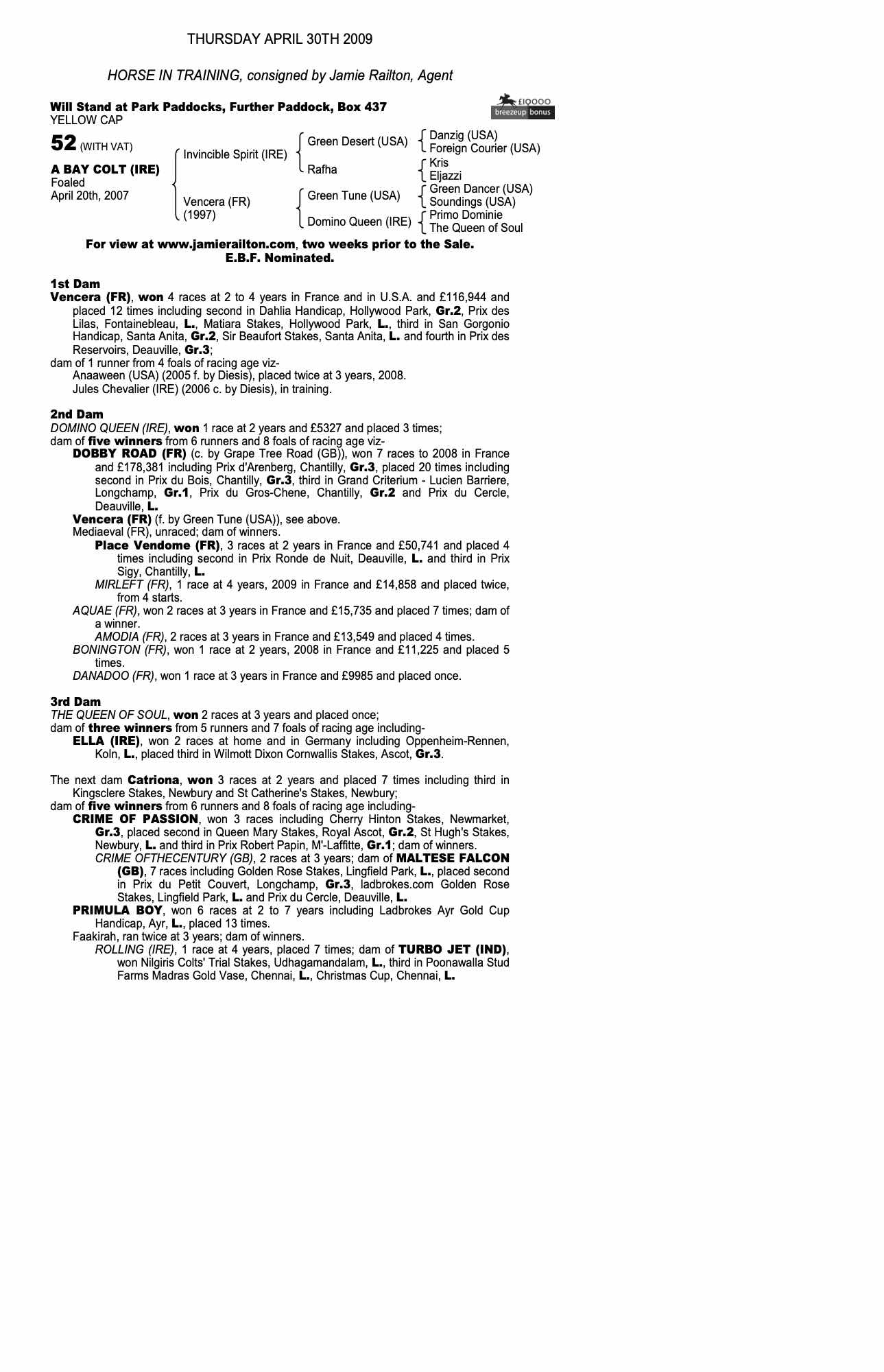 Consignor: Jamie Railton, Agent