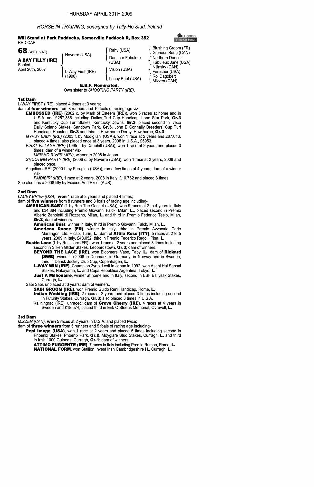 Consignor: Tally-Ho Stud, Ireland