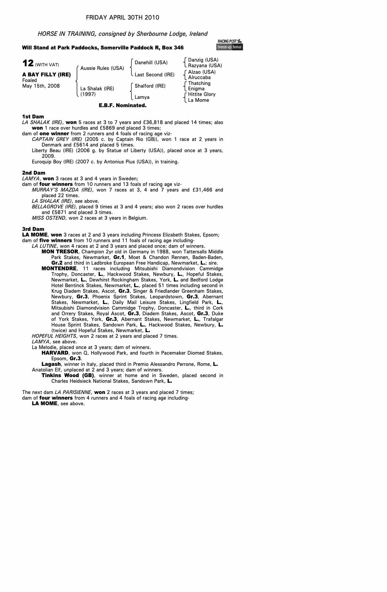 Autumn Horses in Training Sale 2008 lot 830 G. by Statue of Liberty (USA) 2006, Egerton House Stables=>Lot Not Sold