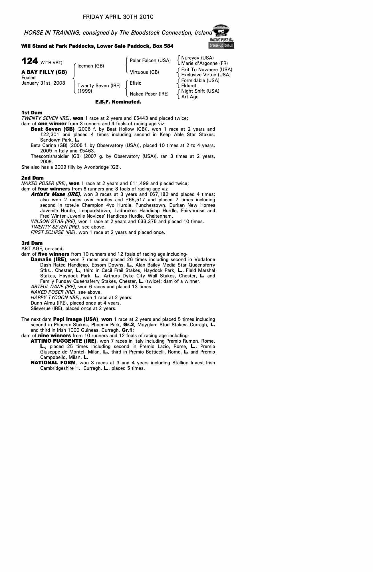 October Yearling Sale, Book 3 2010 lot 2229 F. by Avonbridge (GB) 2009, Masters Stud=>John Ryan Racing 2,000 gns