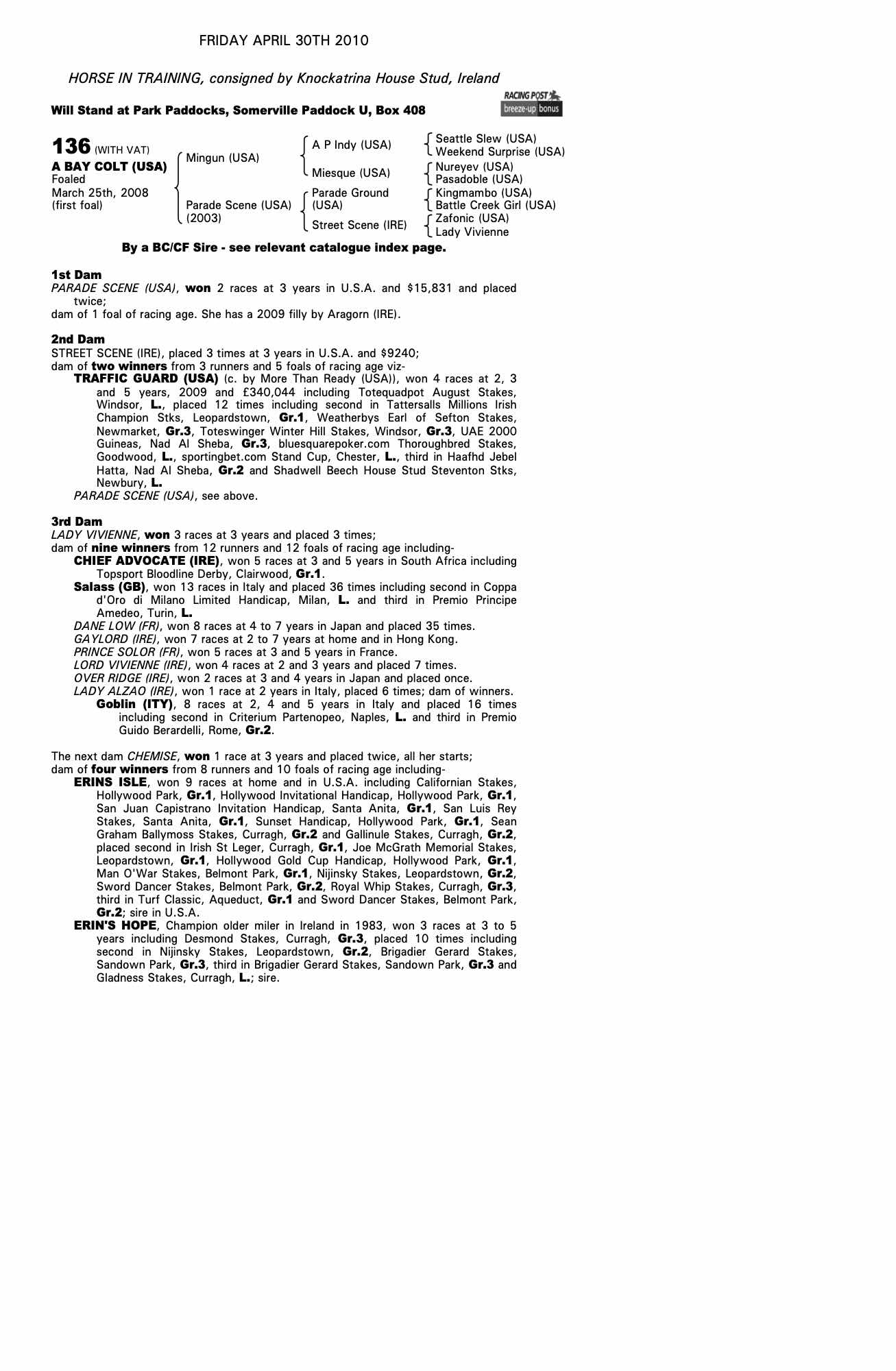 September Yearling Sale 2010 lot 393 F. by Aragorn (IRE) 2009, Castletown Stud=>J. Spearing €4,500