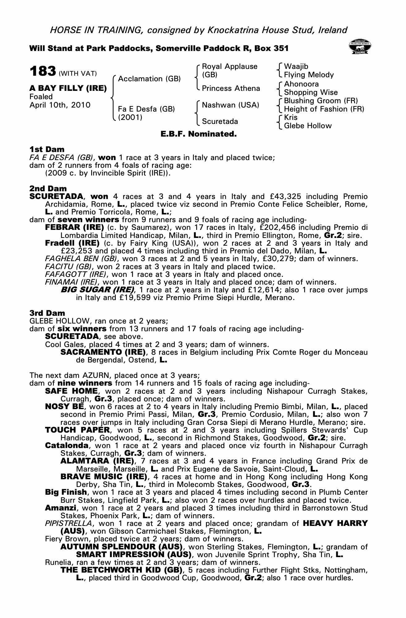 September Yearling Sale 2011 lot 77 F. 2010, Clonbonny Stud (Agent)=>Canice Farrell €5,000